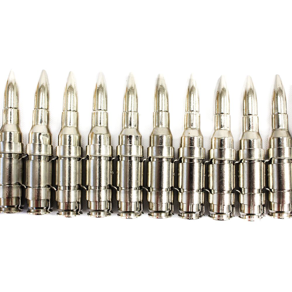 Aggressive and daring, the 0.308mm Caliber Bullet Belt is the ultimate metalhead accessory. Whether you are dressing up as a soldier for Halloween or just want to make a punk rock statement, this belt is a must-have. The authentic-looking belt is made of non-live dummy bullets, making it lightweight and comfortable to wear. Available in a variety of styles and colours.