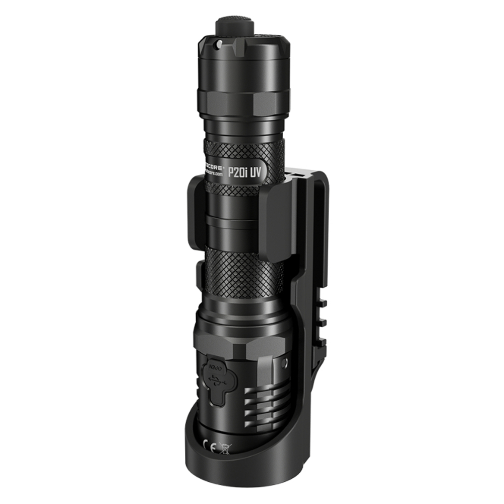 The Nitecore P20i UV is a versatile and powerful torch built with military and law-enforcement use in mind. It can emit up to 1800 lumens with a max throw of 368 yards along with a 320mW UV light. The UV beam illuminates fluorescence in materials, perfect for patrol inspection, forensic science, and currency detection. Non-linear strobe patterns cause enhanced dizzying effects, highly effective for diffusing a tense situation. With the integrated USB ports, it is easily rechargeable even on the go, green ticking it as a perfect duty light from all angles.