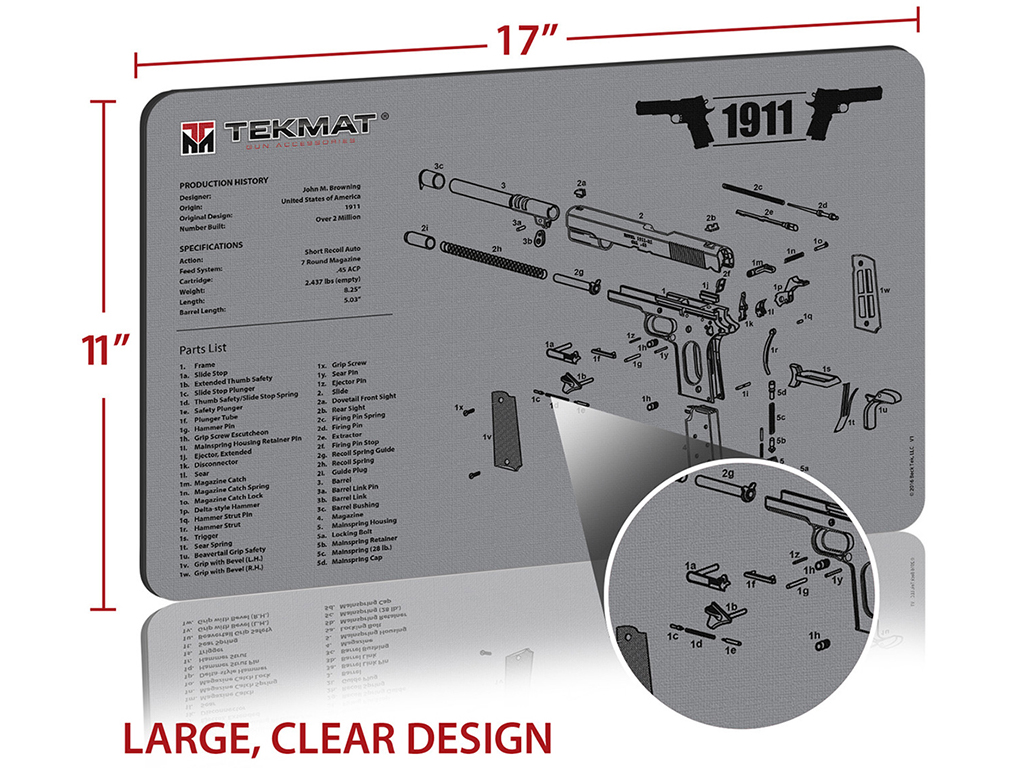 Each mat provides a dedicated surface for cleaning, maintenance, and parts organization while helping protect guns and workbenches. The printed layouts assist with part identification and general disassembly reference.