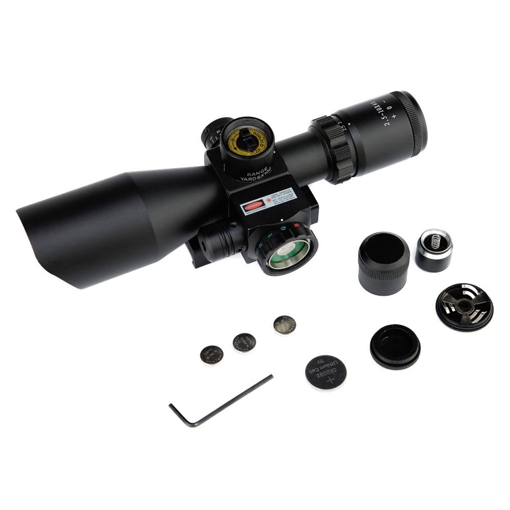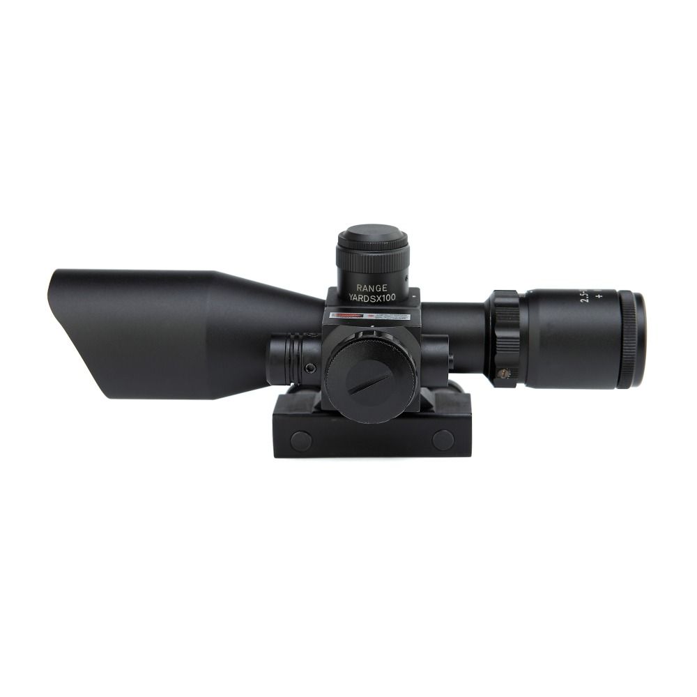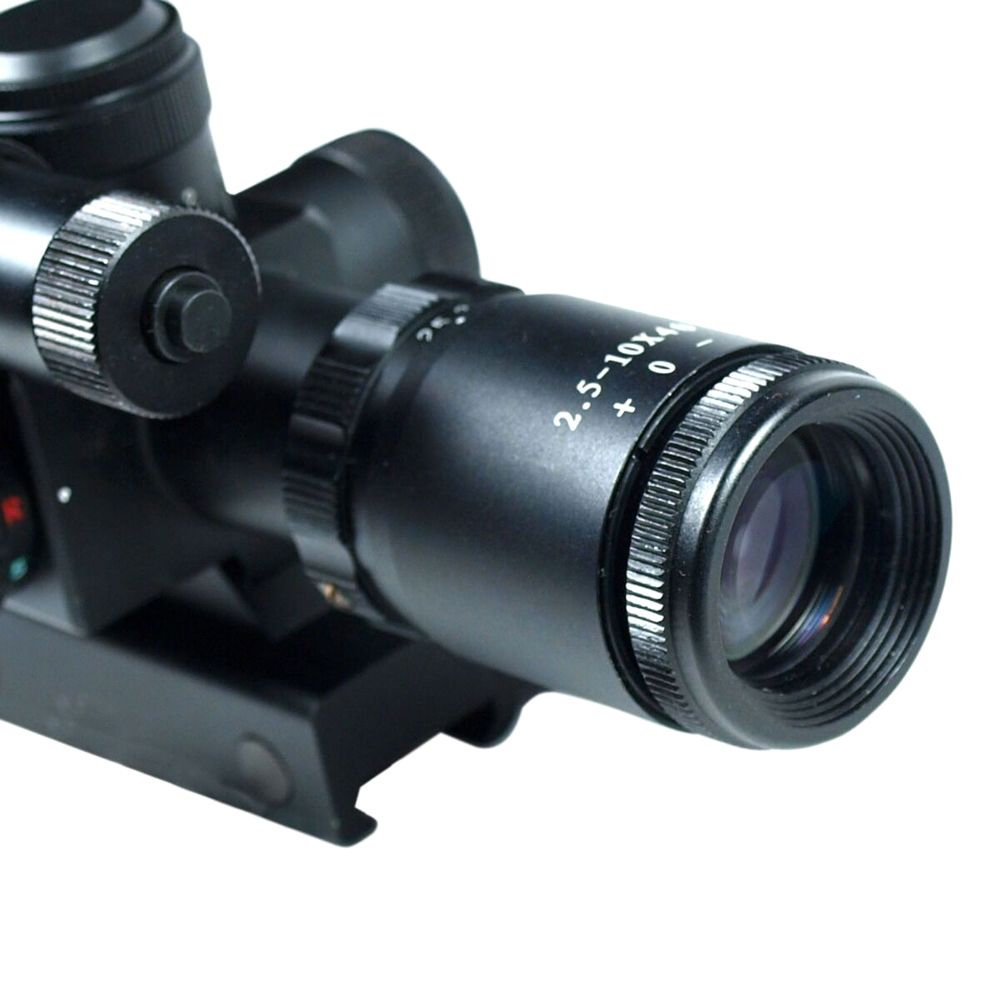 This compact tactical rifle scope is well suited for close to mid range shooting, with high optical clarity at 2.5-10X times magnification and a 40mm objective diameter. The reticle is illuminated in red or green and in multiple brightness intensities, for a suitable sight picture regardless of lighting or environment. The integrated powerful green laser sight allows for quick acquisition of close quarter targets.