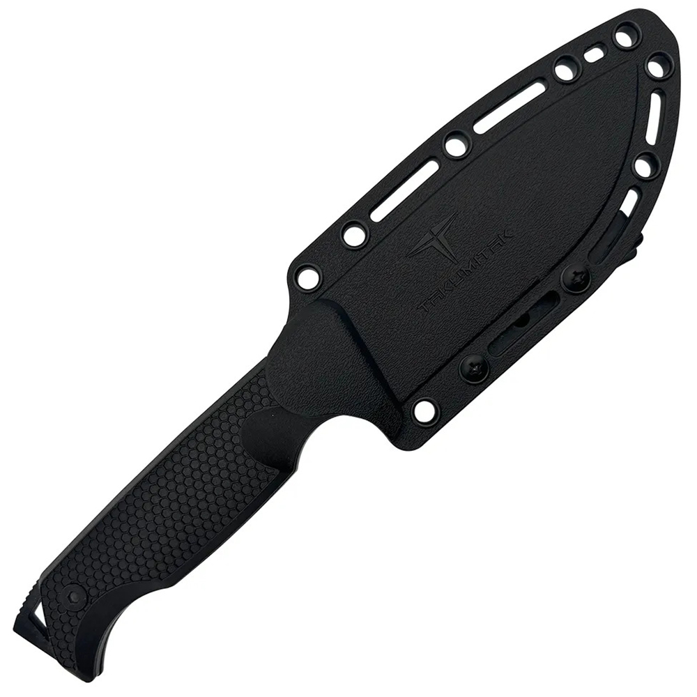 The Black Oxide Fixed Knife pairs a tactical profile with practical reliability. Its black oxide finish reduces glare and adds corrosion resistance, while the hollow-ground blade makes clean, precise cuts.