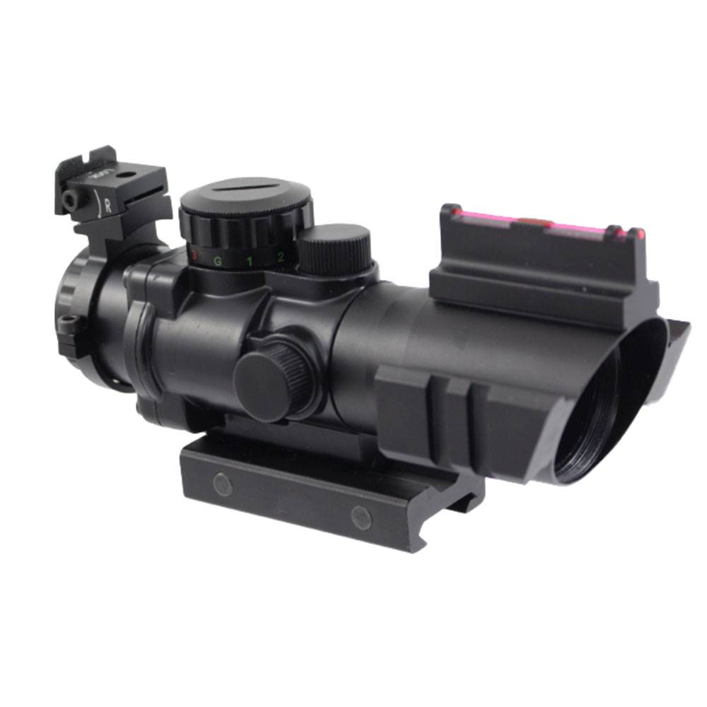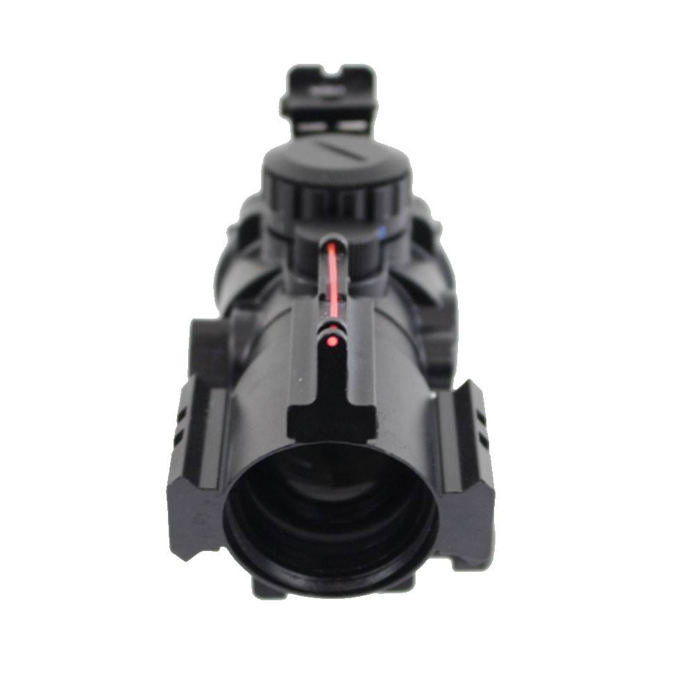 This compact tactical rifle scope is well-suited for mid to long range shooting, with high optical clarity at four times magnification and a 32mm objective diameter. The tactical arrow reticle is illuminated in red, green, or blue, and in multiple brightness intensities, for a suitable sight picture regardless of lighting or environment.