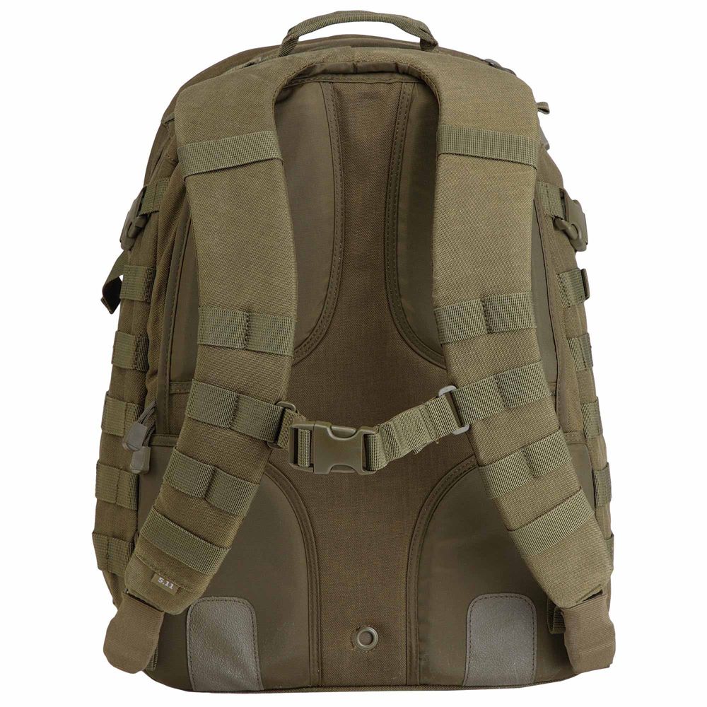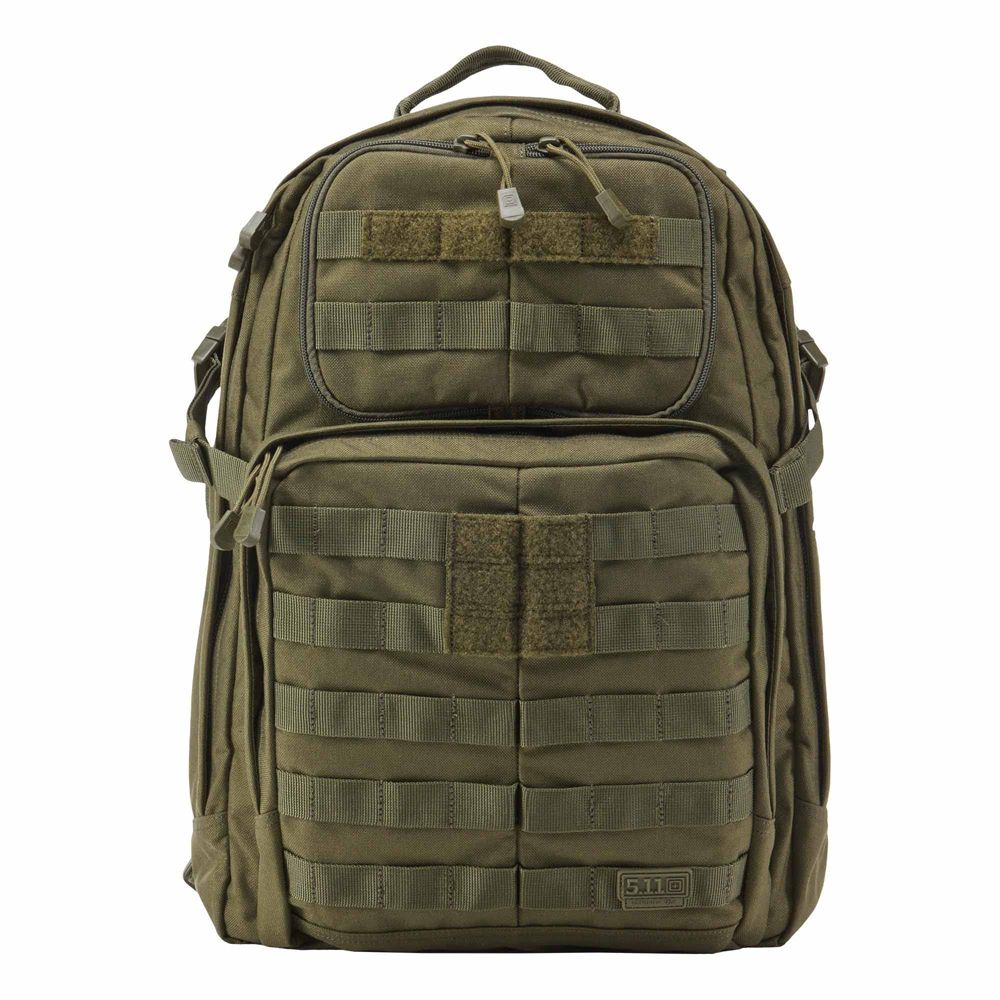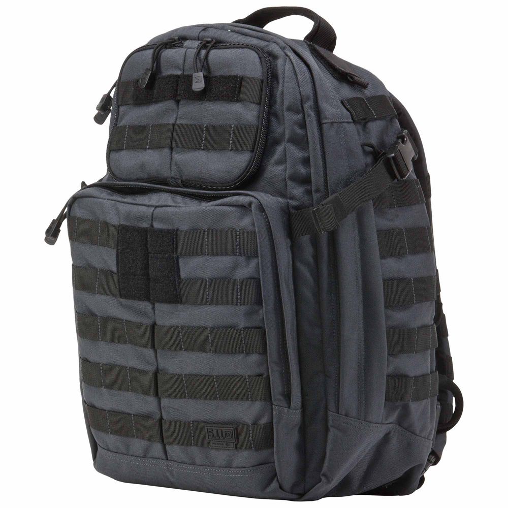 Our most popular tactical backpack, the RUSH24 is designed to provide superior storage capacity and organization without slowing you down. The roomy main compartment offers three interior mesh organizer pockets to keep small accessories organized, a padded hydration pocket keeps you moving, and a fleece-lined sunglass pocket keeps your eyewear within easy reach. Dual side storage compartments offer double-zip access, a large stuff-it pocket with an integrated draw cord provides expandable storage when you need it, and contoured compression straps ensure a stable, comfortable carry. A wrap-around web platform is MOLLE/5.11 SlickStick System compatible, allowing you to customize your storage options as you see fit. Easily the best tactical backpack choice for a wide range of applications, the RUSH24 combines superior mobility and enhanced storage with customizable functionality that excels in any environment.
