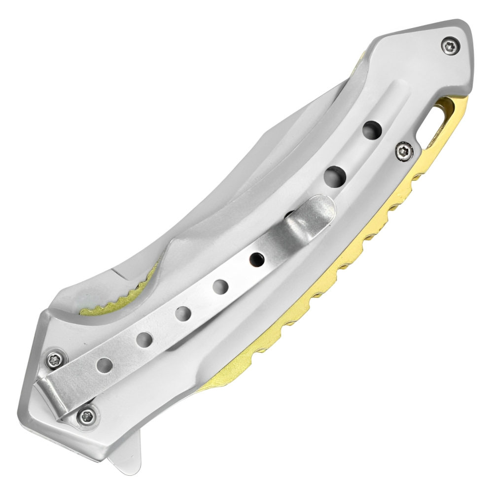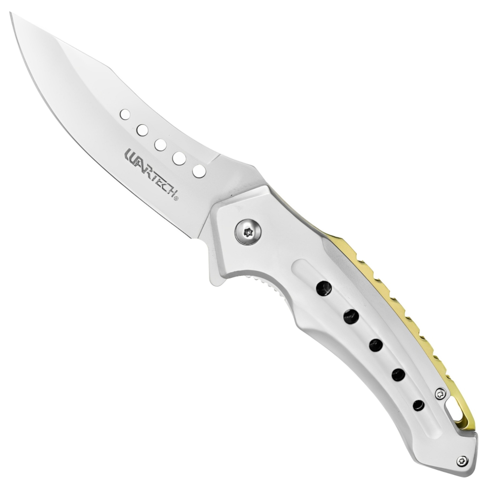Built For Performance And Convenience, The 8'' Wartech Curved Folding Knife Delivers A Sharp Silver Blade With A Curved Edge For Clean, Controlled Cuts. The Durable Handle Ensures Comfort During Use, While The Belt Clip And Lanyard Hole Offer Easy Carry Options Wherever You Go.