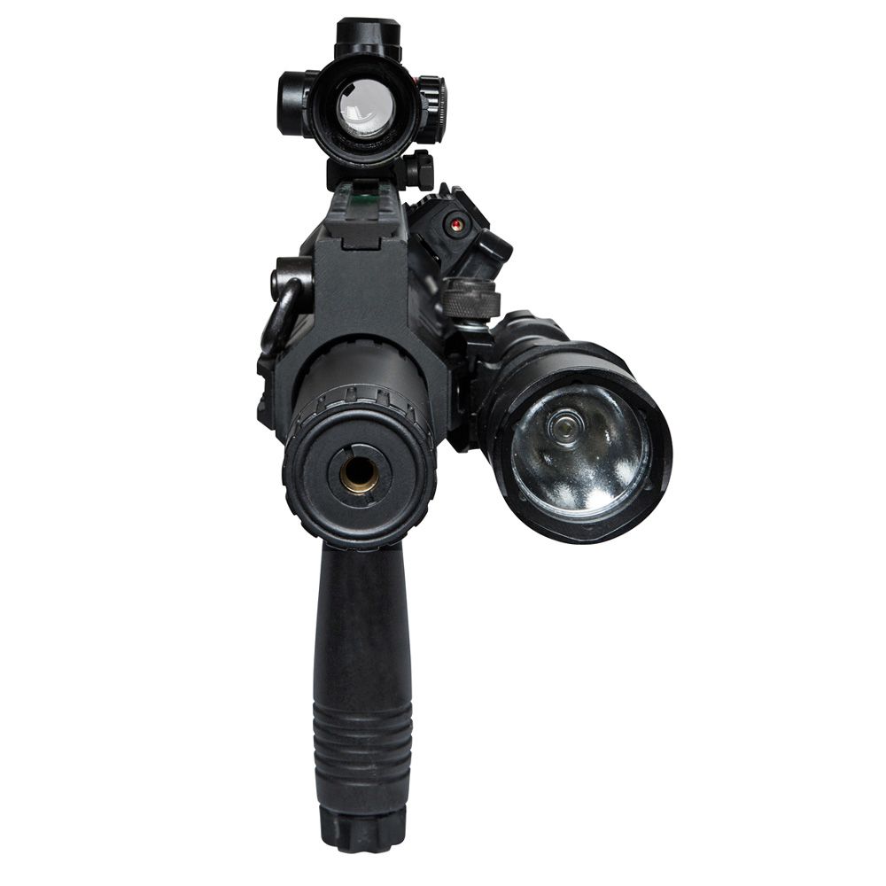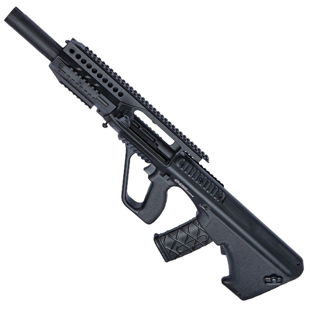 The Steyr AUG A3 MP is a specialized version of the Proline Steyr AUG A3 MP Austrian firearm with all the specializations and enhancements compared to the sport line guns. The biggest enhancement comes from the multi-angled rail mounts which allow the gun many modifications such as scopes, sights and mounts. There are a total of 9 rails, 7 of which are removable to allow the operator to only keep and use the rails they want and discard the rest to keep the weight down, the style of the gun intact. Internally is a version 3 gear box with 7mm bearings and high quality gears and piston. The gear box has quick change spring which allows for fast change in muzzle velocity should the circumstances demand it. The gun shoots 394 fps out of the box.