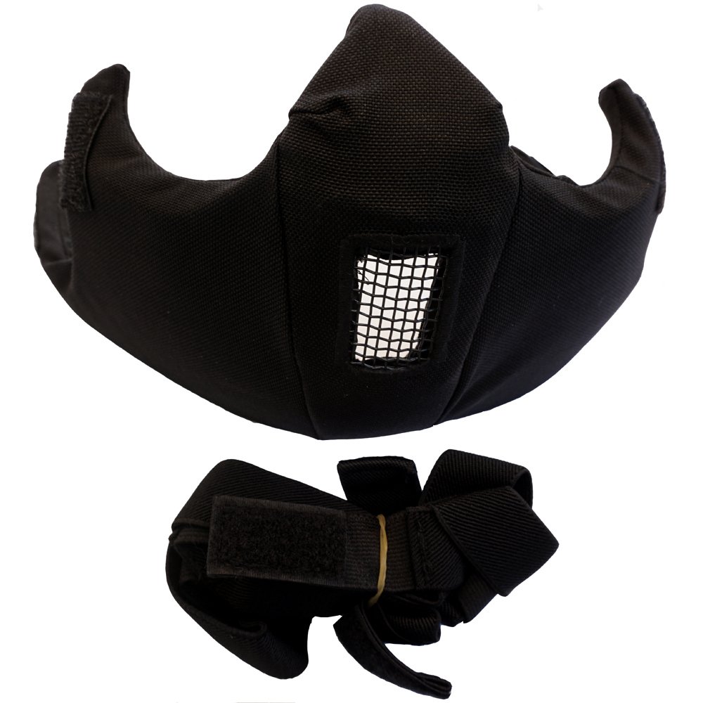 Wear this airsoft face mask with goggles and a helmet to protect yourself against your fiercest opponents. Vented mouth cage makes it easy to breath and padding around nose is flexible and comfortable. Includes an elastic headband, four fitting bands for helmet.