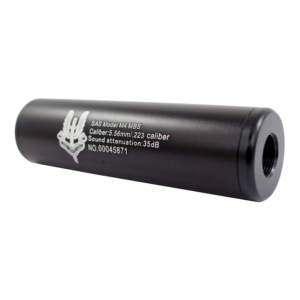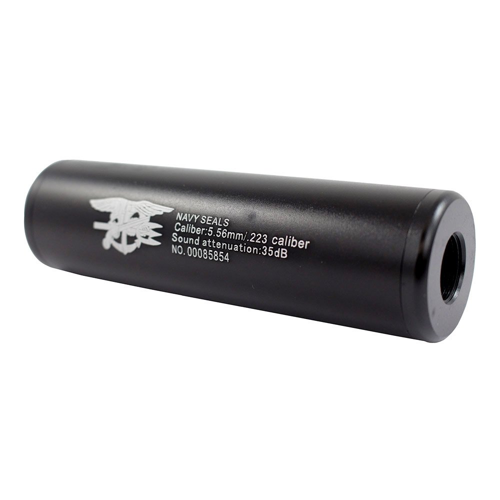 The Airsoft Mock Barrel Suppressor is a compact mock airsoft suppressor. Its reduced diameter allows you to recess it inside your rail. The dual 14mm CW/CCW thread allows it to be fitted on most airsoft rifles. The small size also complements pistols with 14mm threaded barrels. Available in 6 popular designs to allow you to show your pride. 110mm long with a 30mm diameter aids in protecting extended inner barrels.