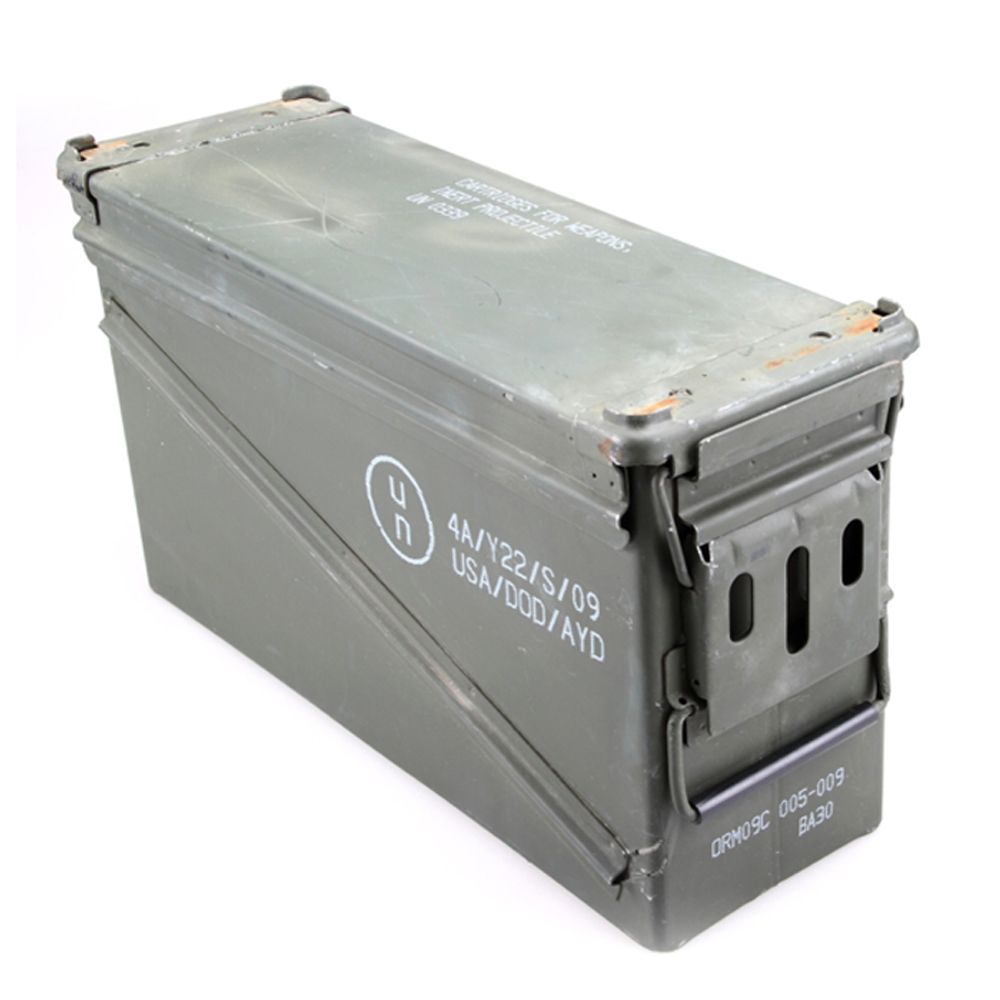 The 40MM ammo can comes with Rubber O-ring seal that protects your contents, top side latches, side carry handle, a removable lid and Steel construction.