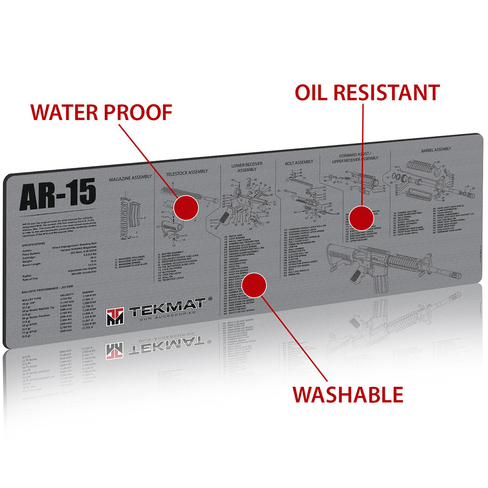 The TekMat AR-15 Gun Cleaning Mat offers premium protection, superior durability, and a spacious work area for maintaining and servicing your AR-15 rifle.