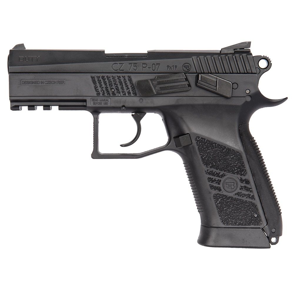 The CZ 75 P-07 Duty is a new generation of the CZ 75 pistol which was first designed back in 1975 by Ceská zbrojovka. This model is a compact tactical upgrade with authentic CZ trademarks, available with a matte black or two-tone finish. It features a CO2 blowback system and fires with a muzzle velocity of 360 FPS.