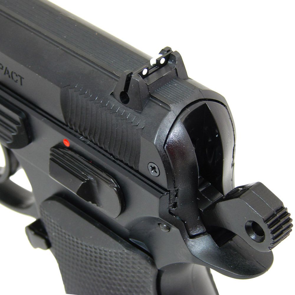 This is the non-blowback vesion of the Co2 powered semi-automatic CZ 75D Compact. Being a non-blowback means more power left for propelling the BB’s giving this pistol its extremely high power – 125 m/s (410 fps). The pistol comes with a tool that allows you to adjust the Hop-up, change Co2 capsule and unveil the silencer threads.