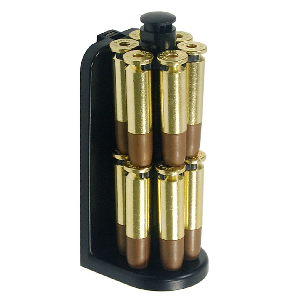 A speedloader is a device that loads multiple bullets into a magazine at once. For revolvers, a speedloader loads all 6 chambers of the cylinder at the same time. It's a fun tool that, with proper use and practice, can dramatically cut down on reload time.