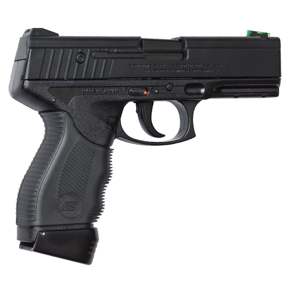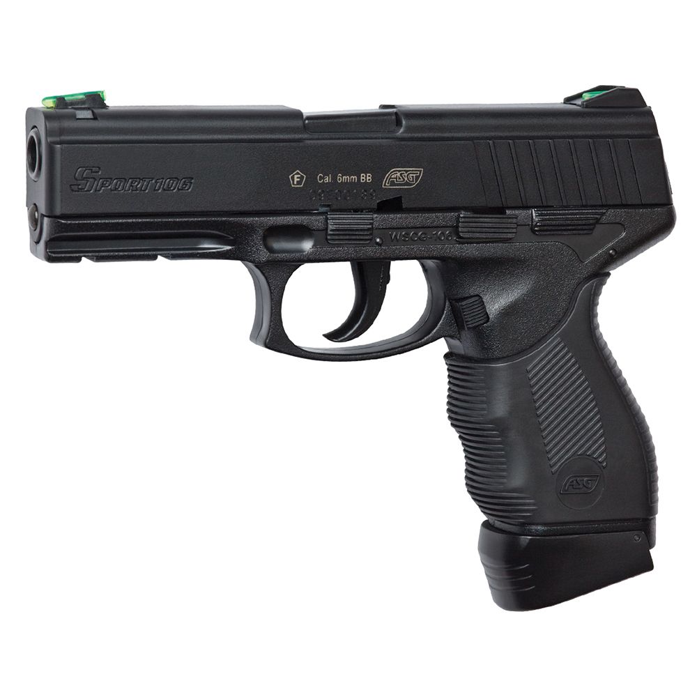 Co2 powered pistol with fixed Hop-up and lower weaver /picatinny rail for accessories. It has illuminated front and rear sights. The magazine holds 17 BB’s