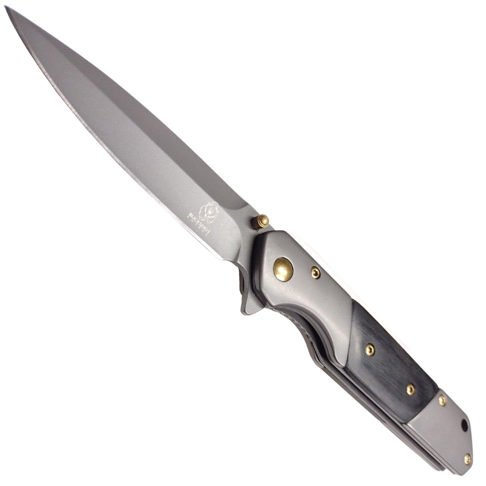 Buckshot Spring Assisted Pocket Knife Flipper Wood Slim Design Gray EDC Tip-Up.