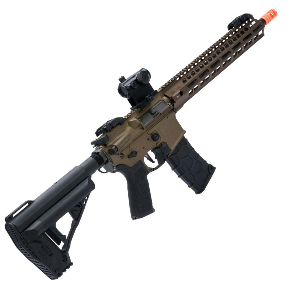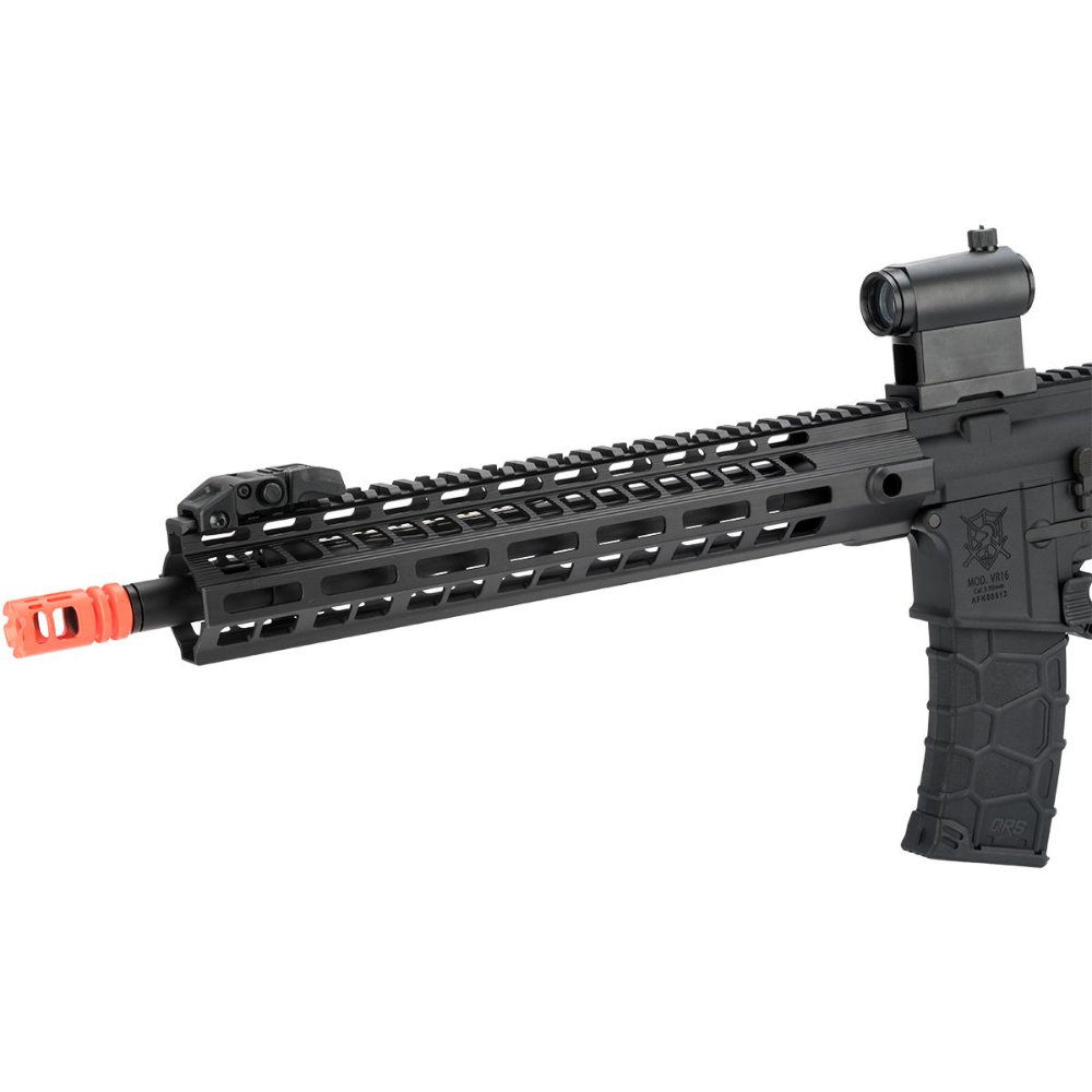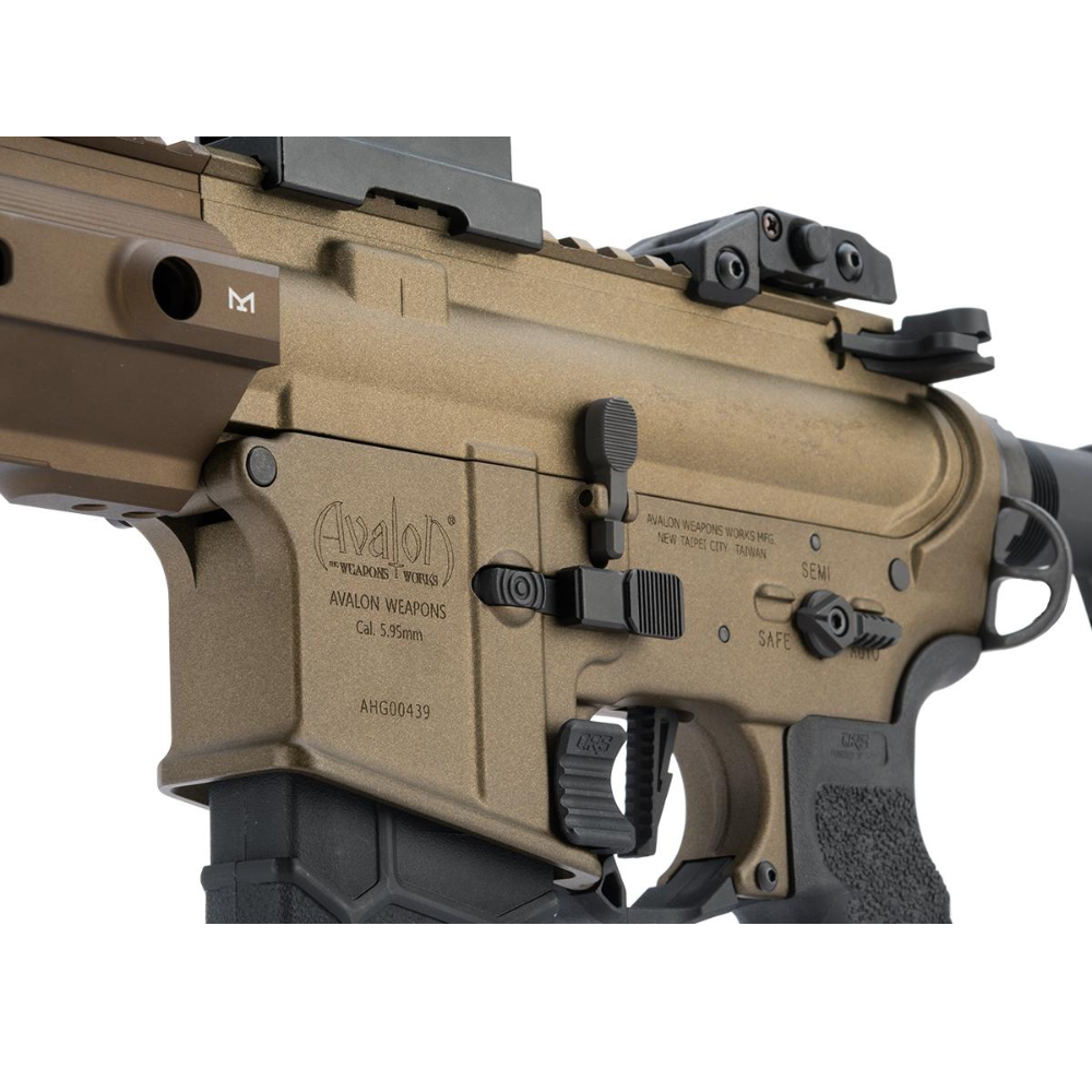 With the addition of the latest VFC electronics and QRS parts in this new release you can imagine the level of dominance and perfection going on with this one. The Avalon Saber Carbine features the latest Version 2 gearbox with a full metal body and stamped VFC markings. It has a free-float M-LOK system with a monolithic top rail, implying ample room for all sorts of sights and accessories. The extendable QRS stock also allows you to adjust the length of rifle to fit your body and it also has a comfortable stock pad that enhances shouldering, triggering more accuracy.