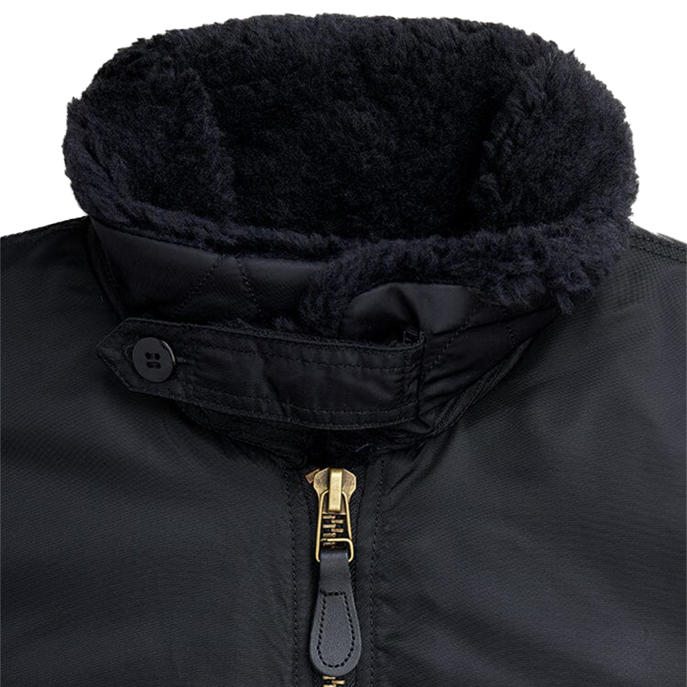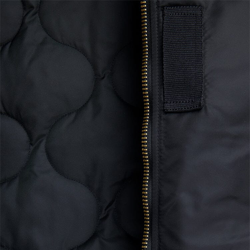 A soft faux mouton collar provides additional warmth while reinforcing the jacket’s unmistakable aviation-inspired profile. Authentic design details such as the MA-1 utility sleeve pocket with the signature red ribbon and the nylon oxygen tab pay tribute to the original flight jacket designs used by military pilots. Inside, a quilted nylon twill lining with insulation adds dependable warmth while maintaining a comfortable, lightweight feel.