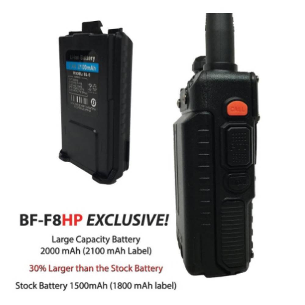 The BF-F8HP is a dual band handheld radio that improves on the UV-5R with more transmit power based on a new generation chipset - along with new concierge service. Beyond the 3 Power Levels (1, 4, 8 watt) it also includes: a new 2000mAh Battery, an in-depth user guide, concierge support, and the High Gain V-85 Antenna. All while still maintaining full backward accessory compatibility with all prior UV-5R accessories. The BF-F8HP has the latest N5R-340A firmware not available on any other model.