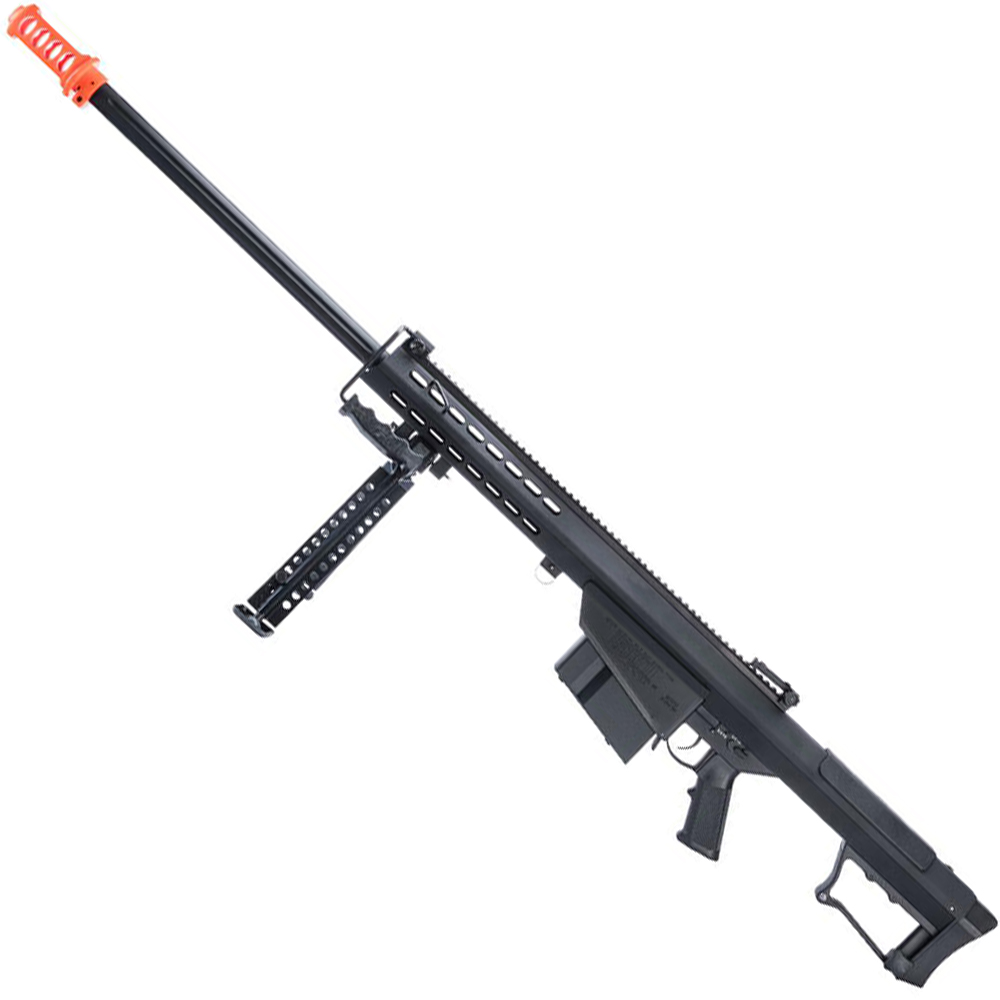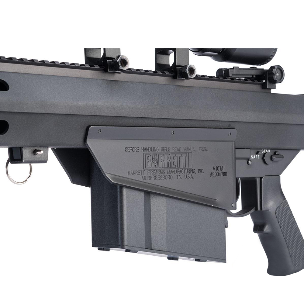 The Model 107 Barrett "Light Fifty" rifle is the next-generation of the original M82. Engineered as the first shoulder fired semi-automatic 50 BMG rifle, the Model 82A1 has been proven in combat in every environment from the snow covered mountains, to the desolate deserts, and everything in between. Its low felt recoil and reliable repower delivers on target with every pull of the trigger. More than just a rifle, the Model 82 is an American icon. With a modernized muzzle break and monopod, the M107A1 weapon system becomes a more formidable long-range anti-material rifle than ever before.