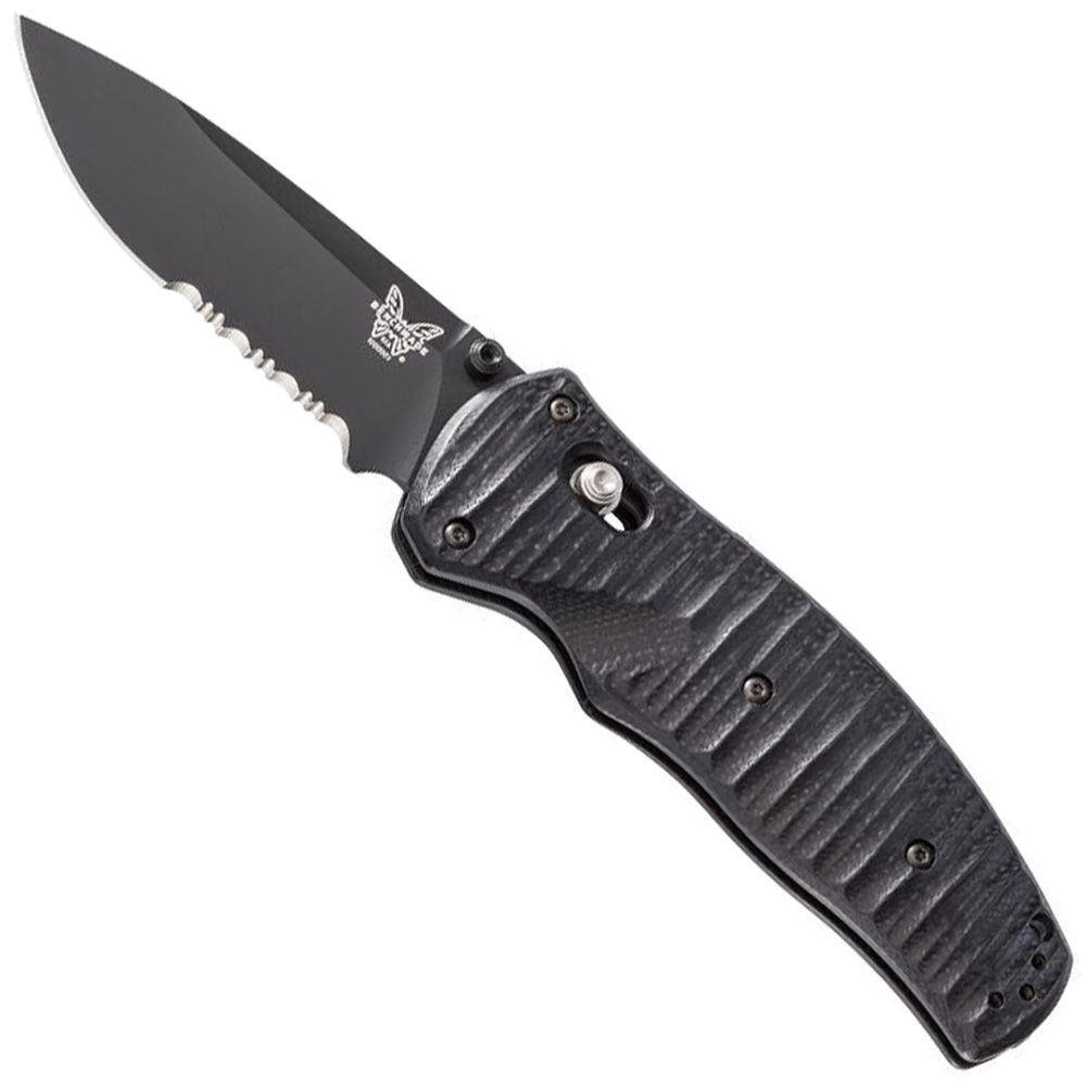 This composite assisted opening knife utilizes the same AXIS Assist mechanism as the Barrage series but has a broader blade and gives a slimmer, fuller handle feel with added strength of G-10 scales.