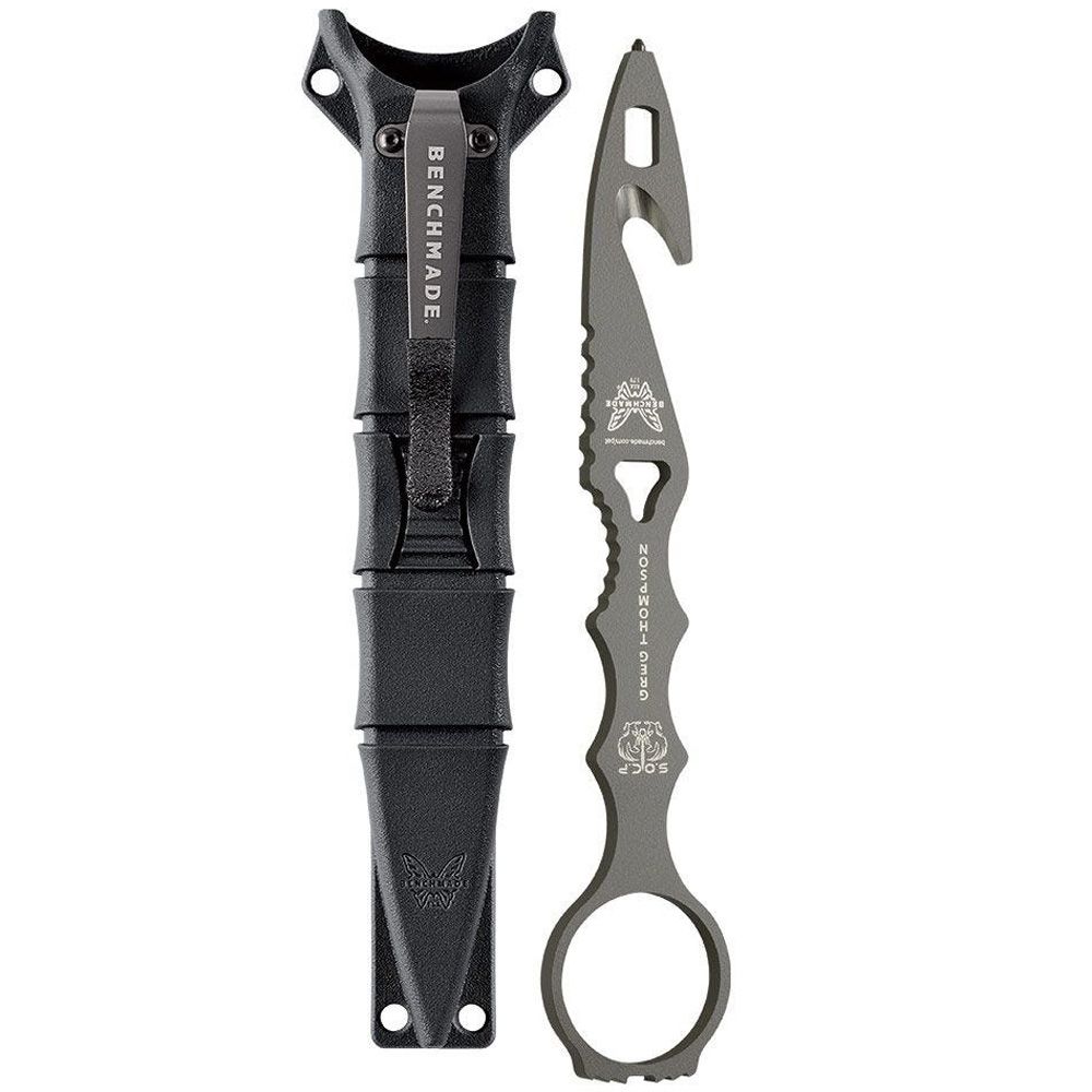 This Benchmade Rescue Tool was designed by Greg Thompson, head of the Special Operations Combatives Program (SOCP), as a high performance multi-purpose dagger for rescue action. Made out of 440C stainless steel it has good hardness and is able to stand up to any abuse, no matter what end of the tool you use. Its Injection Molded Plastic sheath provides formed protection for the blade and allows for easy deployment with its finger ring opening. Available in a black or sand sheath.
