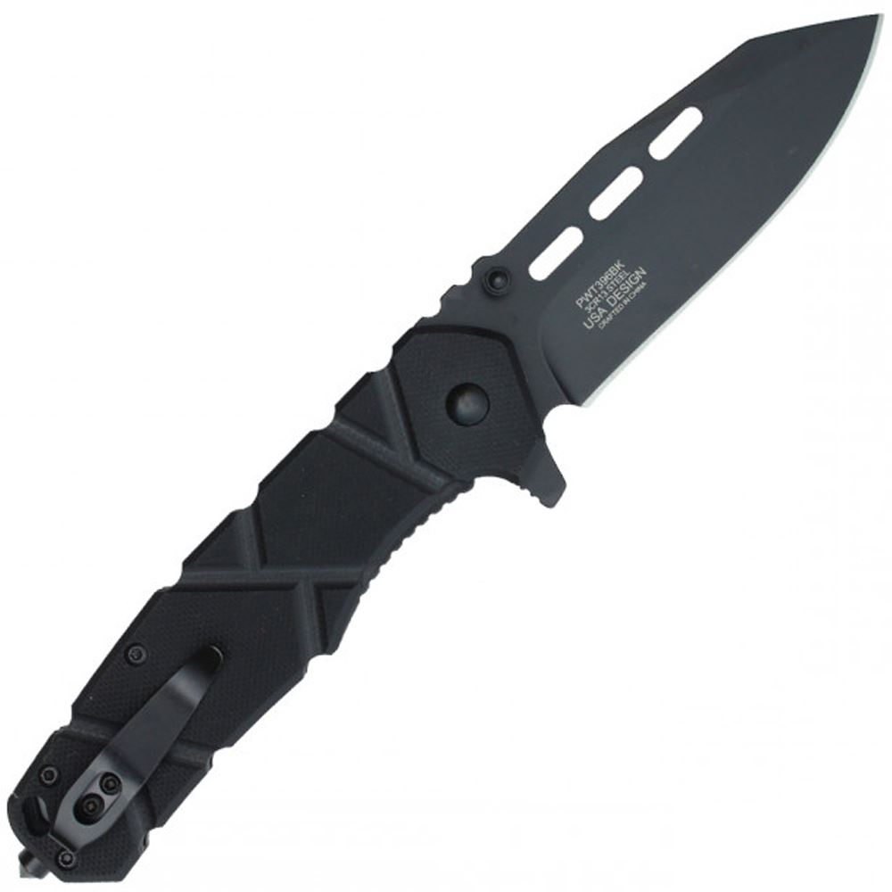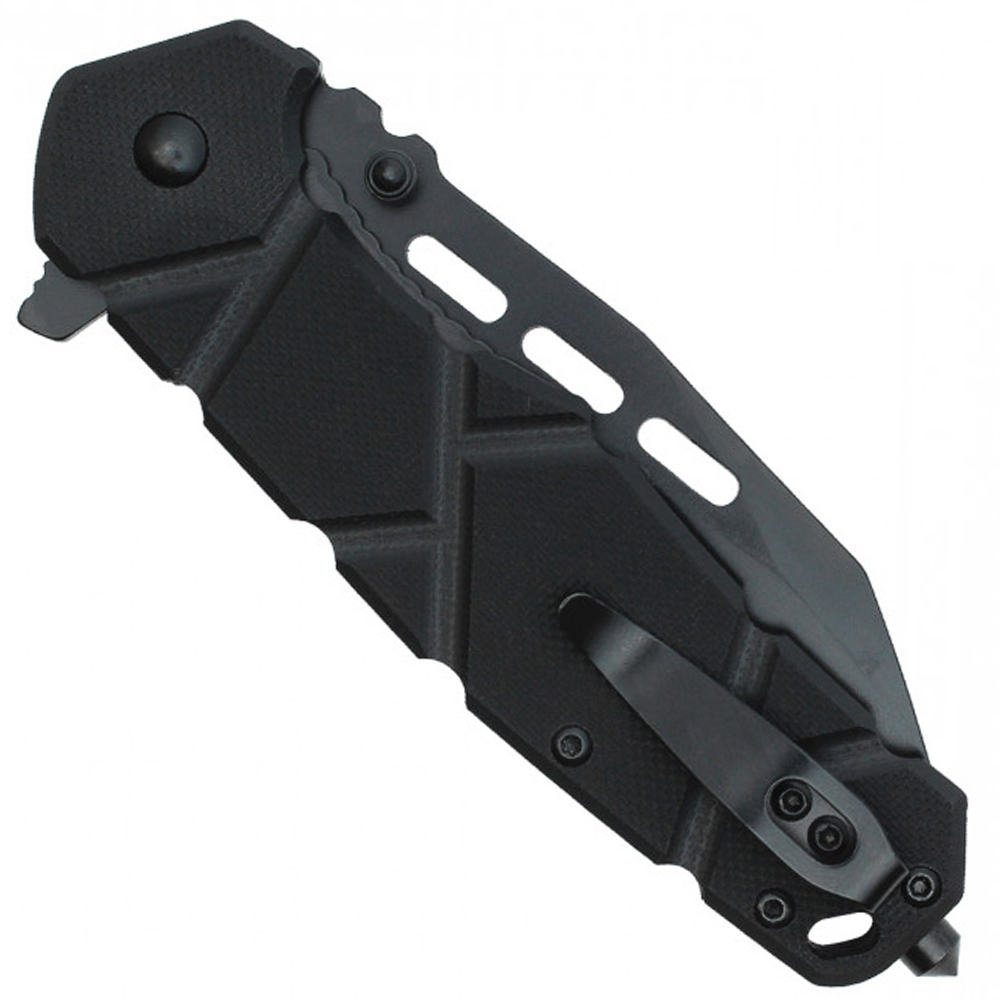 Balanced for control and built for function, this Mislpec Tactical folding knife features a sharp black steel blade and a textured G10 handle.