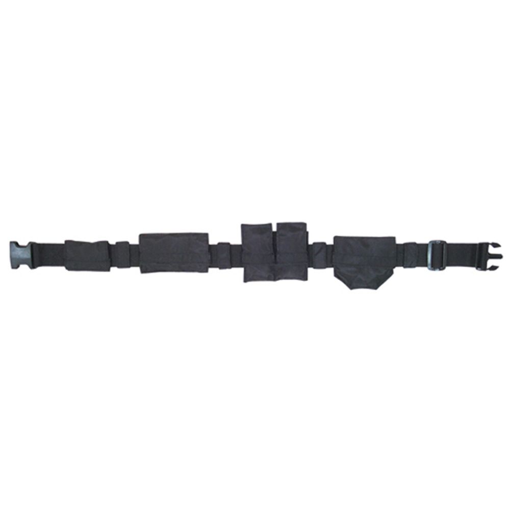 Made of rugged synthetic material. Quick release adjustable buckle. Removable Velcro pouches. Adjustable to 58".