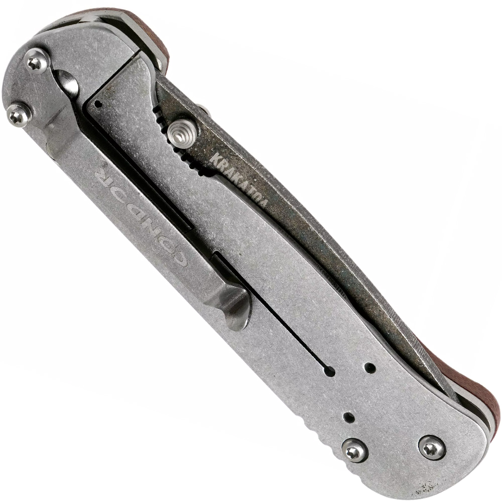 With the Krakatoa Folder, Condor introduces a game-changer in the realm of folding knives. Designed by the dynamic duo of engineer Jorge Umaña and visionary Joe Flowers, this knife incorporates the revolutionary Condorlock system, ensuring unparalleled stability and performance. Crafted from 1095 high carbon steel, its 3.5-inch blade exudes strength and versatility, while the Micarta® handle provides a comfortable grip in any condition. From wilderness adventures to everyday tasks, the Krakatoa Folder epitomizes excellence in both form and function.