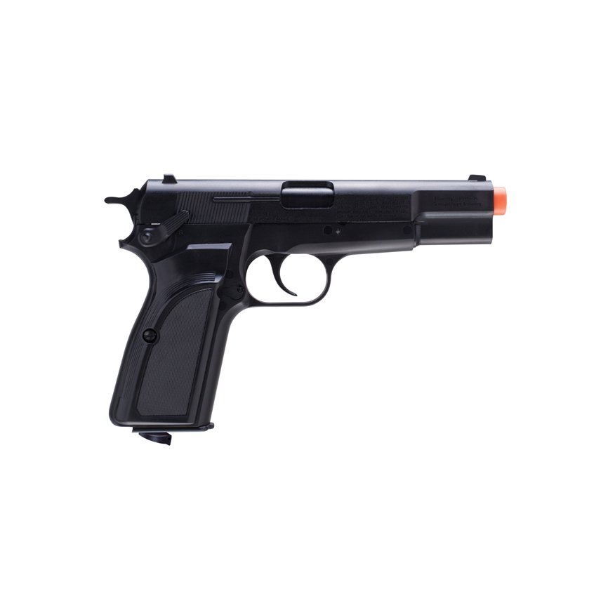 The Browning Hi Power Mark III CO2 gun is a single action airsoft pistol that shoots at a velocity of 400 FPS! This lightweight, pistol has a 14 round capacity and a drop-free magazine that houses CO2 and BBs. This gun is fun for any age airsoft shooter!