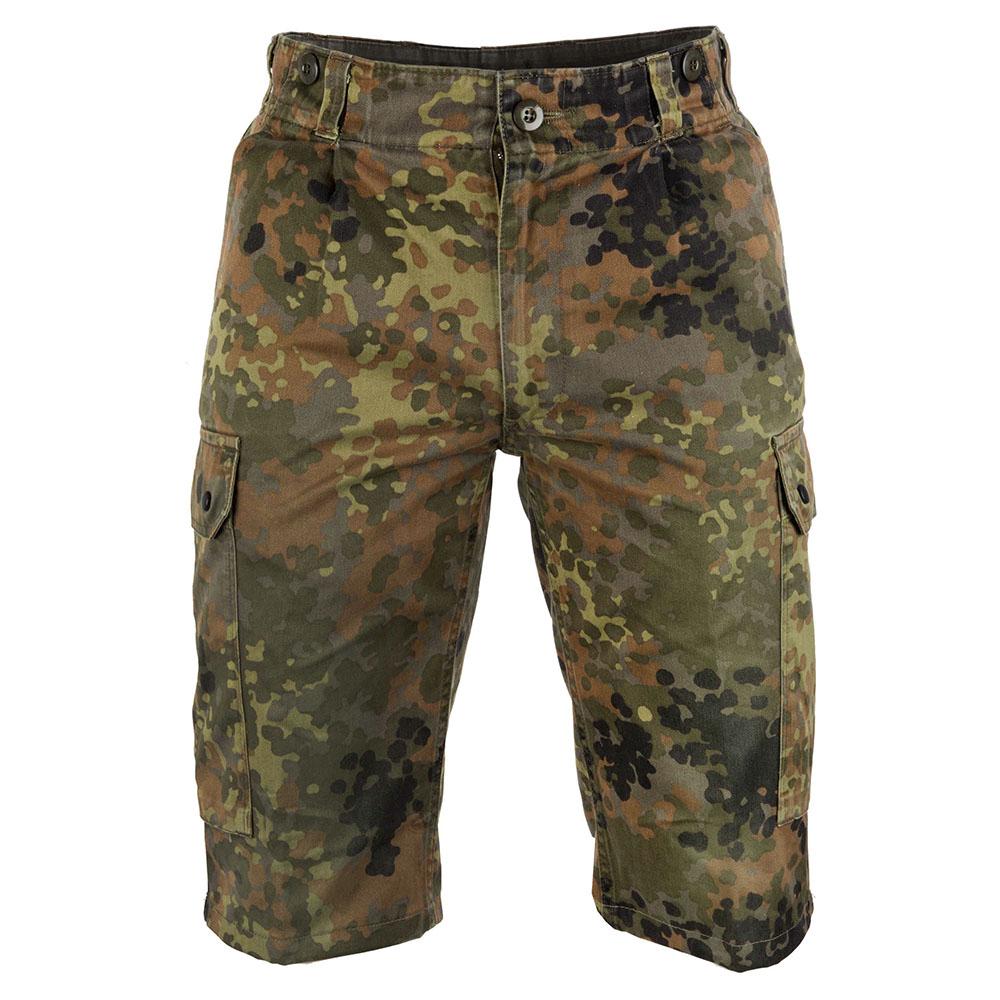 The Camo German Flectarn Bermuda Used are used military surplus shorts designed to offer breathable comfort, tactical functionality, and the rugged look that outdoor enthusiasts love. Made from a cotton-polyester blend and printed with the iconic Flecktarn pattern, these shorts are perfect for warm-weather conditions. You’ll find ample storage with multiple pockets and added utility from reinforced belt loops and buttons for suspenders.