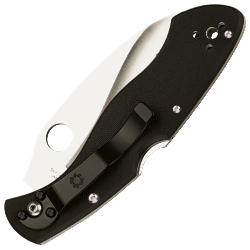 The Civilian has a patented reverse "S" blade that's intended to be used like an oversized claw. The tip is ground to an ultra-thin profile. Deeply curved and full at the belly, the VG-10 ground blade excels in slicing and is available fully SpyderEdged. Because of its distinctly specialized features it is not intended or designed for general utility or everyday use. Curved in all the right places for ergonomic use and retention of the knife, the handle is black G-10. A two position clip supports discreet tip-up or tip down carry on the right side. One of the most specialized CLIPITS in the Spyderco line-up, the Civilian is available in limited quantities.
