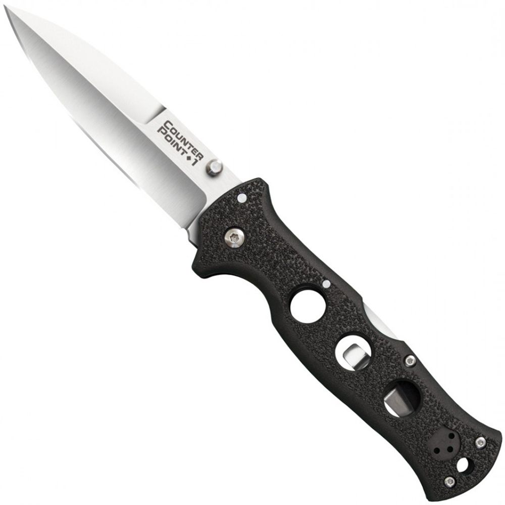 We spent years exploring high-end boot knives, and now we’ve applied that knowledge to a folding knife – the Cold Steel Counter Point. Their stiletto-inspired spear point blades have a distinctively pronounced false edge and a lustrous satin finish, combining to make a blade that not only looks great, but delivers a show stopping performance! Made from Japanese AUS10A Steel, the Counter Point is highly corrosion and stain resistant and takes a very sharp and durable edge. The Counter Points handle is made from Griv-Ex and reinforced with heat treated aluminum liners, making it not only very strong, but comfortable and secure in almost any grip imaginable. For added strength and safety, we equipped the Counter Point with our famous Tri-Ad locking mechanism, proven again and again to be incredibly strong and shock resistant.