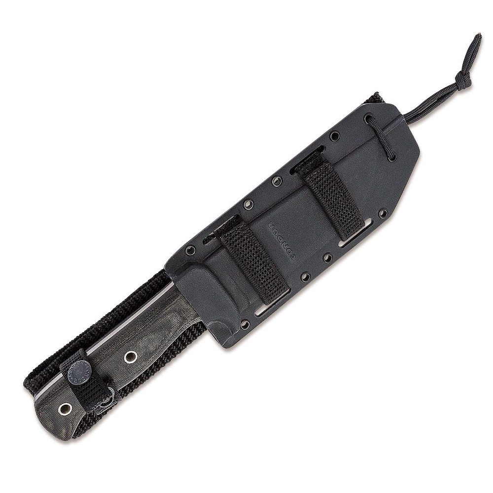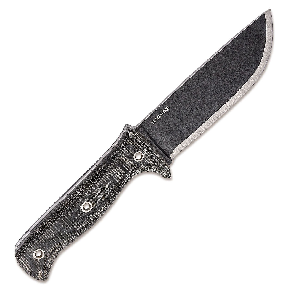 The blade is made from German 1075 High Carbon Steel and are heat treated and annealed to about 56-58 Rockwell hardness. The edge is hand finished and polished to razor sharpness. The blade features a black traction powder coating. This is a non-reflective powder coating with a texture, designed for tactical use, rust and abrasion resistance. The Micarta handles enhance both the look and function while delivery indestructible phenolic performance.
