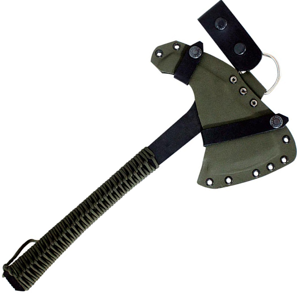 The Condor Sentinel Axe Army Green is engineered for strength, versatility, and survival. Featuring a 1075 high carbon steel head hardened to 50–55 Rockwell, this axe is finished with a rugged black traction powder coat to resist wear. The handle is wrapped in authentic 550 lb test paracord, giving you additional survival options with its inner strands that can be repurposed for critical tasks. A premium Kydex sheath designed by 710 Custom Sheaths with a leather belt loop makes this axe easy to carry wherever your mission takes you.