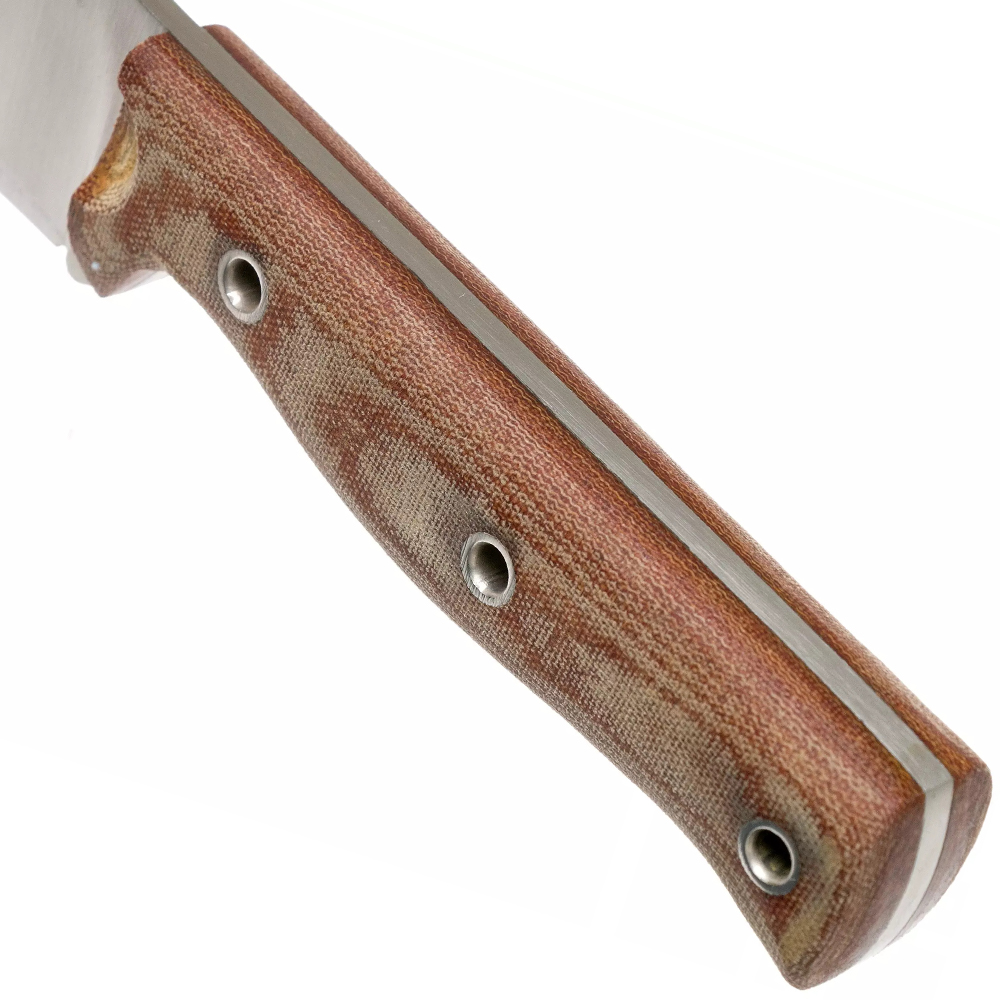 The full-flat grind with a secondary bevel enhances its slicing and chopping capabilities, while the 0.2-inch thickness ensures the blade maintains its integrity under stress. The ergonomic Micarta® handle provides a firm, comfortable grip, allowing for precision and control in any condition. For added convenience, the knife is paired with a welted leather sheath that offers secure storage, protection, and easy transport, making it ready for any challenge you face.