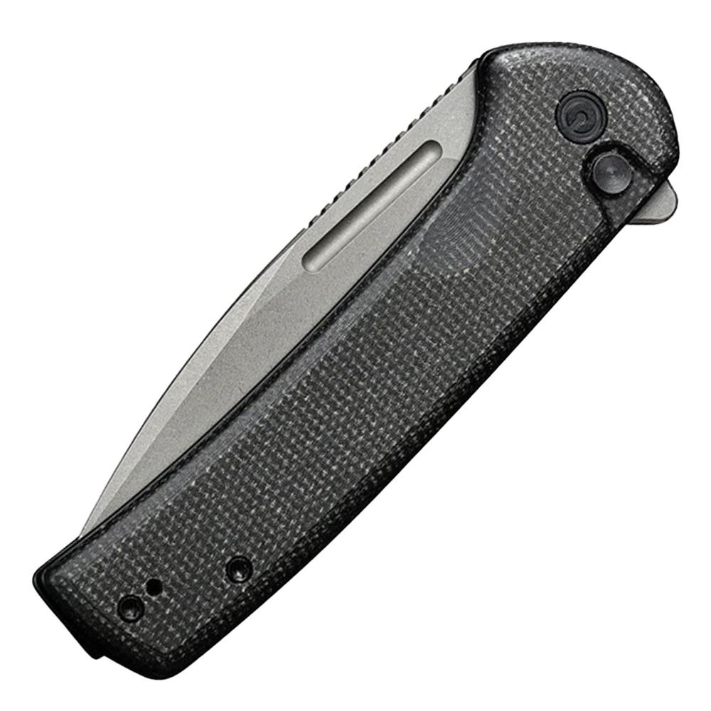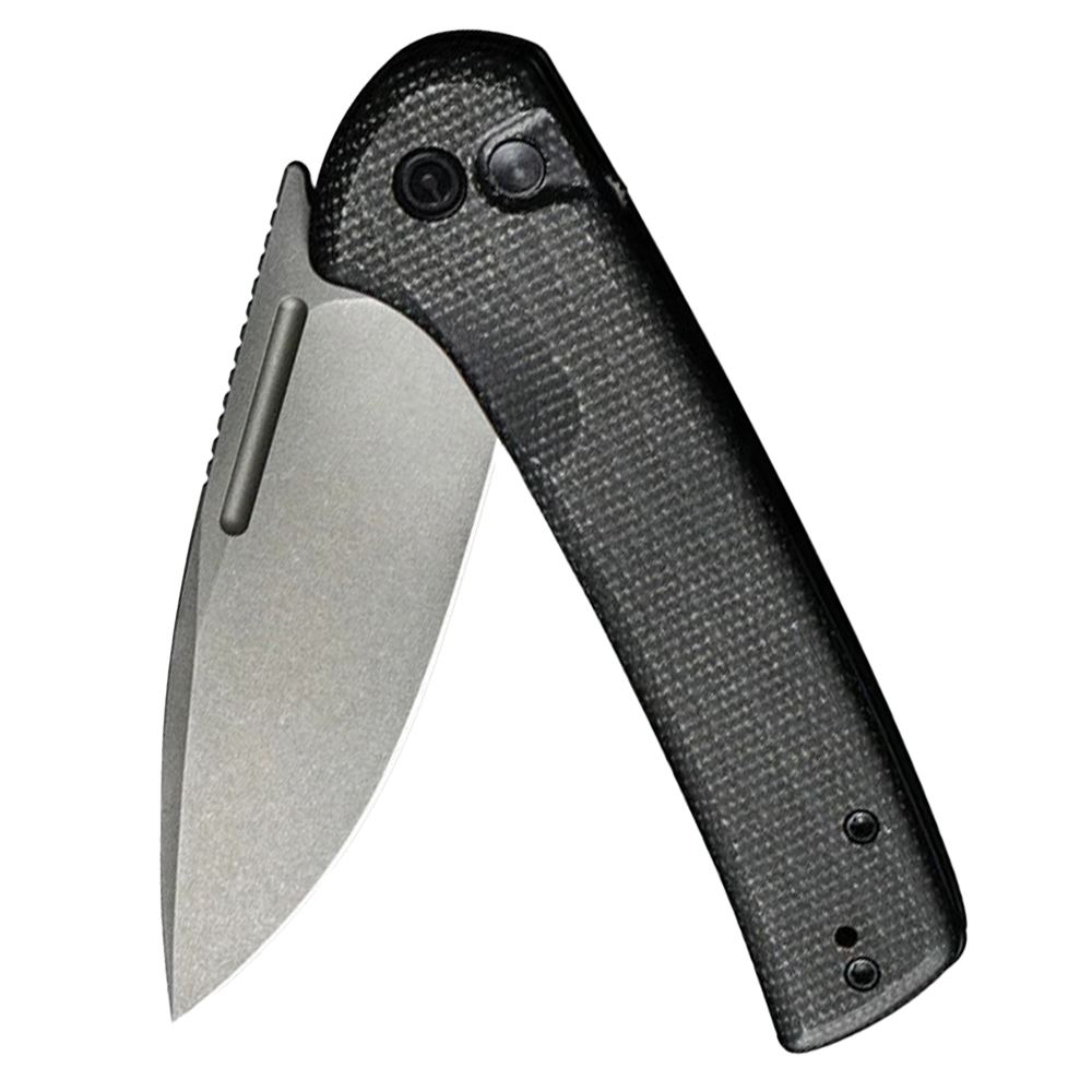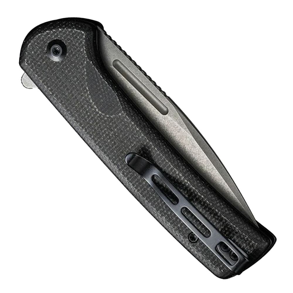 The stainless steel liners and hardware are finished in black to match the micarta scales, creating a cohesive look. Ideal for both left- and right-handed users, the reversible pocket clip ensures accessible, secure carry.
