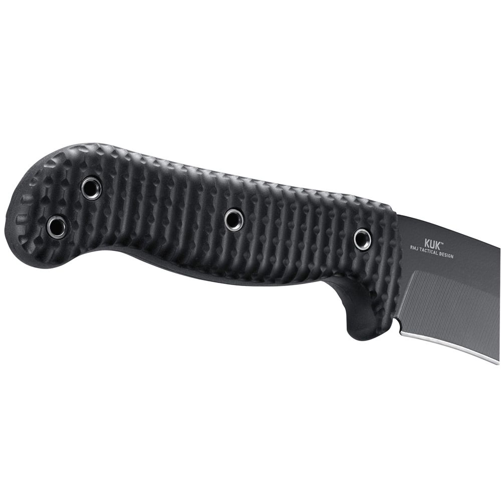 Ryjan Johnson of RMJ Tactical has brought the traditional kukri knife into the 21st century with the CRKT KUK. This tactical machete has the Neaplese knife's iconic inwardly curved blade constructed from durable 65Mn carbon steel. The black GRN handle is complimented by the blade's non-reflective black powder coating, providing a distinctly modern look. The outdoors won't stand a chance against you and your KUK.