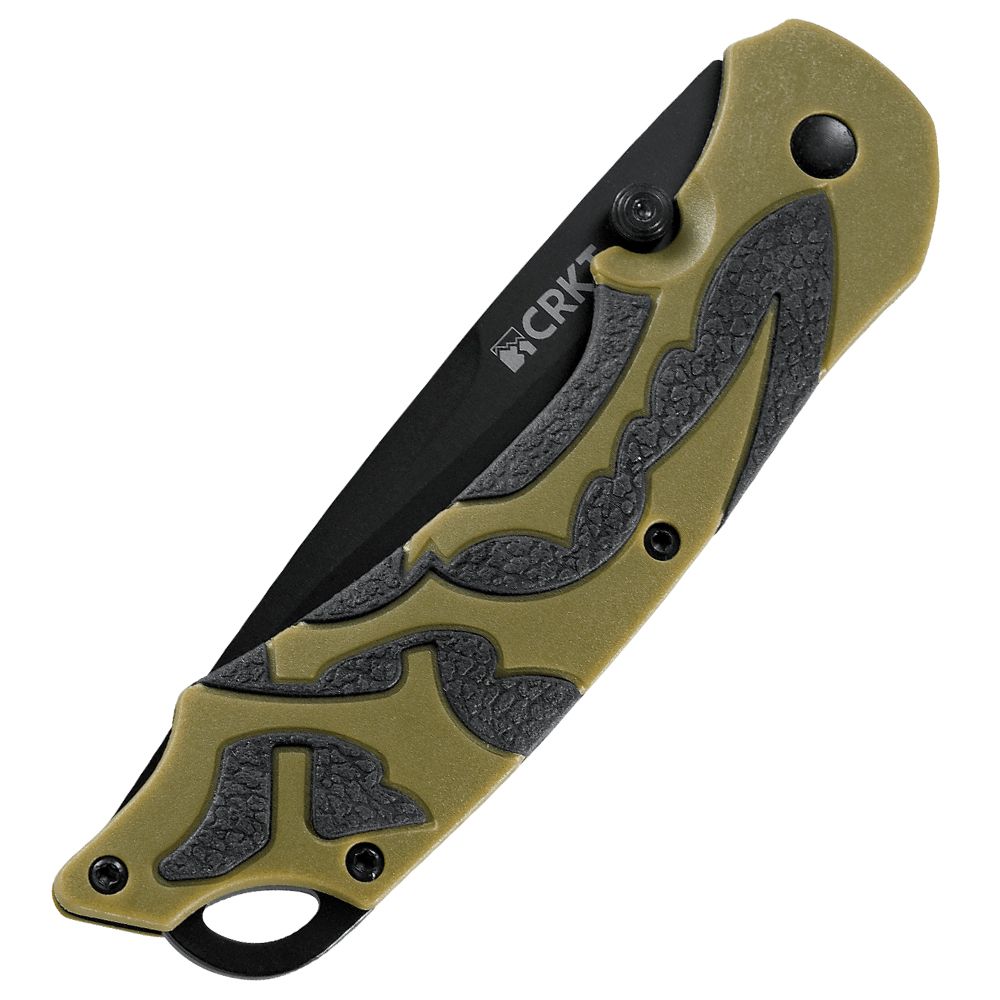 A modified spear point blade style proves effective in a wide variety of every day applications. Blade actuation is done through the patented Fire Safe® release button incorporated into the thumb-stud opener. Simply, push "down and out" on the thumb-stud and as the blade begins to open, the Outburst® opener assist kicks in and the blade opens fully.