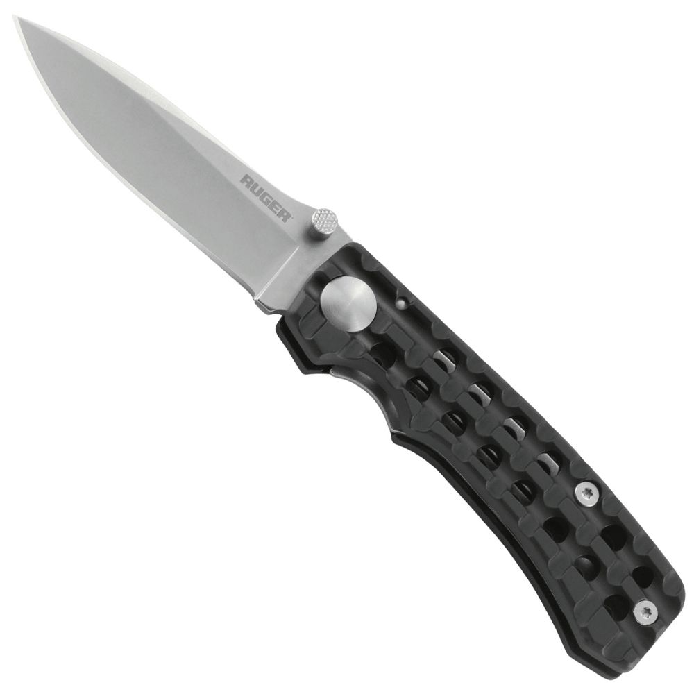CRKT and Ruger have collaborated to bring you the compact Go-N-Heavy folding knife. This scaled down version of the Go-N-Heavy has a sleek 3.5 inch blade for detailed precision cuts. The burly skeletonized handle has a liner lock and is made from ultra-tough anodized aluminum. In place of a pocket clip, this knife comes with a durable nylon belt sheath.