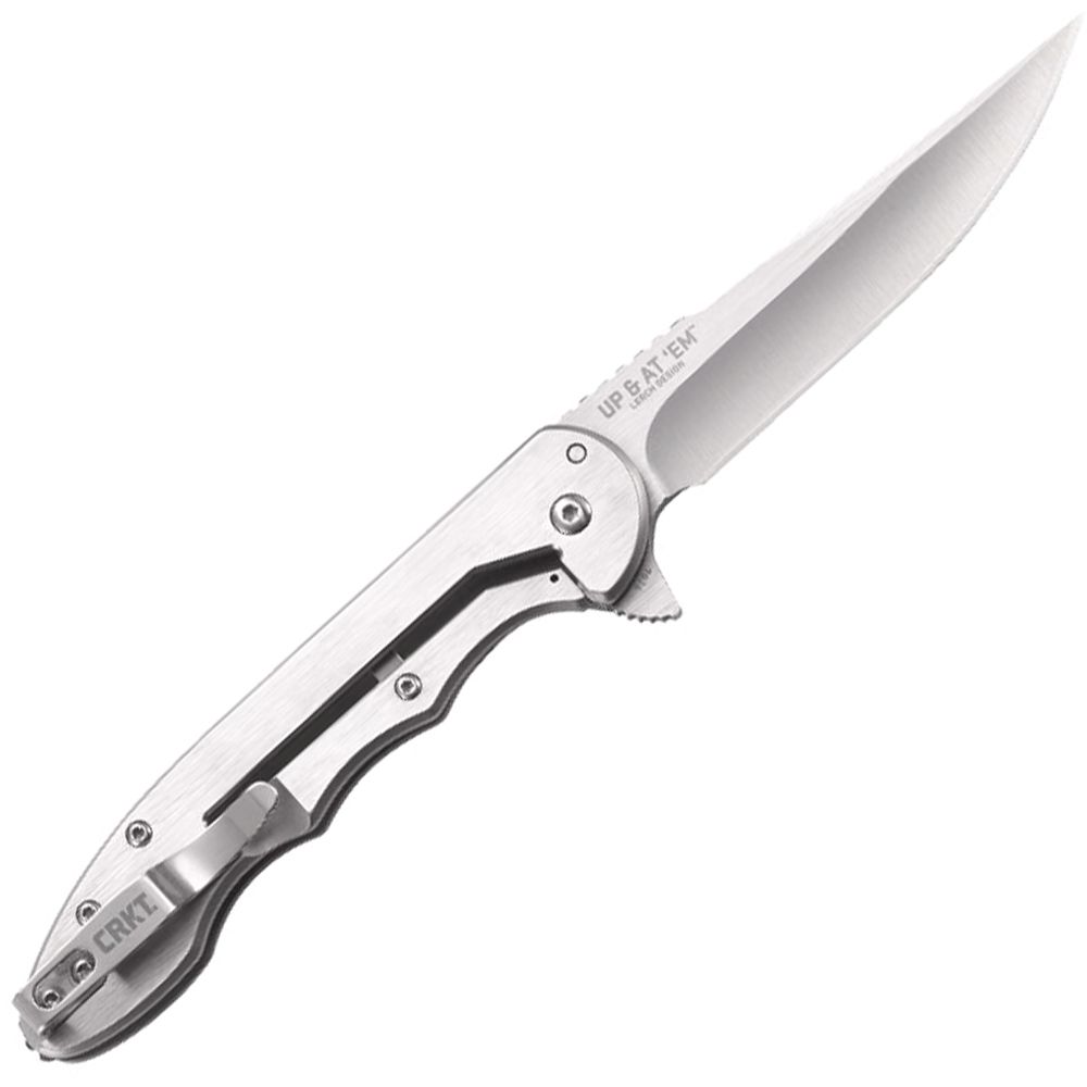 Designer Matthew Lerch is known for his top-shelf talent when it comes to marrying incredibly good looks with the ergonomics that help a knife perform in any condition. The Up & At ‘Em is simply further proof. With a hardworking, two-tone clip point blade, it’s got an impressively long slice when digging into foam blocks, slashing through cardboard, or whatever else your day throws in the way. The blade is deployed from its two-tone stainless steel handle with a prominent flipper. Once open, it’s set surely into place with a strong frame lock to protect your fingers when you’re elbows deep. Classy details on the pivot and the butt end of the handle polish the look.