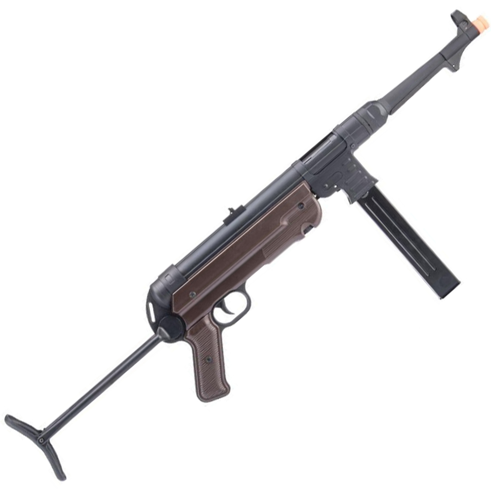 Designed in 1938 and fielded in 1940, the MP40 machine pistol, designed by Heinrich Voller and manufactured by Germany's venerated Steyr Mannlicher became the cutting edge tool of choice of the Third Reichs Wehrmacht. Made from stamped steel and designed to fire from an open bolt, the MP40 was compact, lightweight, easy to use and could spit 9X19mm rounds down range at a blistering 550 rounds per minute. With over 1.1 million produced between 1940 and 1945, the MP40 became easily associated with the field grey clad Wehrmacht.
