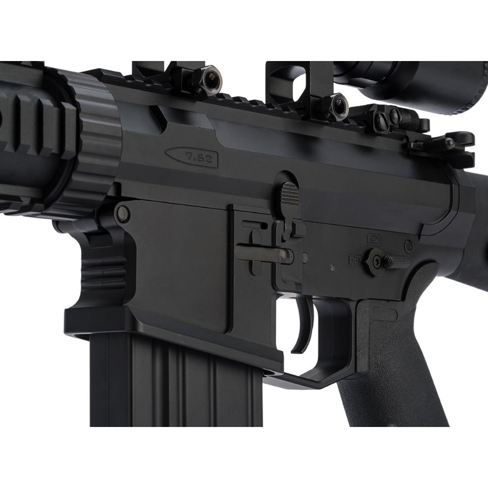 In the ever-changing battlefield of the late 20th and early 21st century, American military forces needed a precision rifle that was flexible enough to meet the shifting demands of urban counter insurgent warfare. The desire was for a rifle with the precision, range and power of a conventional bolt action rifle, but paired with the portability, follow up speed and portability of the standard issues M4 / M16 rifles. The solution came in the form of the SR25 rifle. Chambered in the powerful 7.62x51 NATO cartridge, the SR25 provided superior power and range over the standard 5.56mm round of the M16. When paired with its match grade barrel and free float RIS handguard the SR25 became a formidable and flexible rifle that is capable of being fielded in vast expanses of open space, or in the close confines of today's urban battlefield.