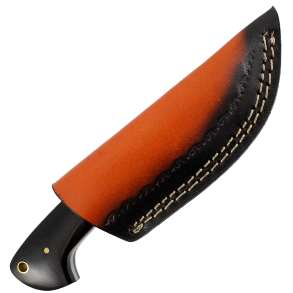The combination of true damascus steel blade and bison horn handle material makes this knife definitely stand out. The cutting edge quality on this knife makes it a good companion and an everyday carry. Leather sheath is included in the package.