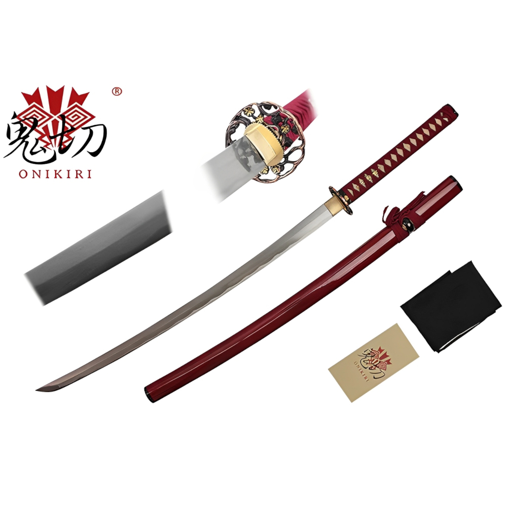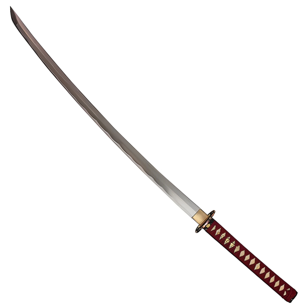 Channel The Soul Of The Swordsmiths With This Meticulously Crafted Katana. With Its 30” Hand-Forged Damascus Steel Blade, Every Strike Carries The Strength Of Hundreds Of Folded Layers. Its 41” Overall Length Ensures Perfect Balance And Flow. Adorned With A Graceful Flower Tsuba And An 11” Fabric-Wrapped Handle - Available In Striking Red Or Black - This Piece Isn't Just A Weapon; It’s A Legacy. Comes Complete With A Decorative Saya, A Sword Bag, And A Certificate For Collectors And Warriors Alike.