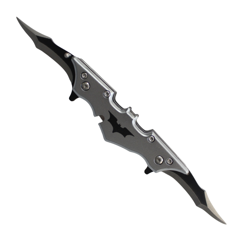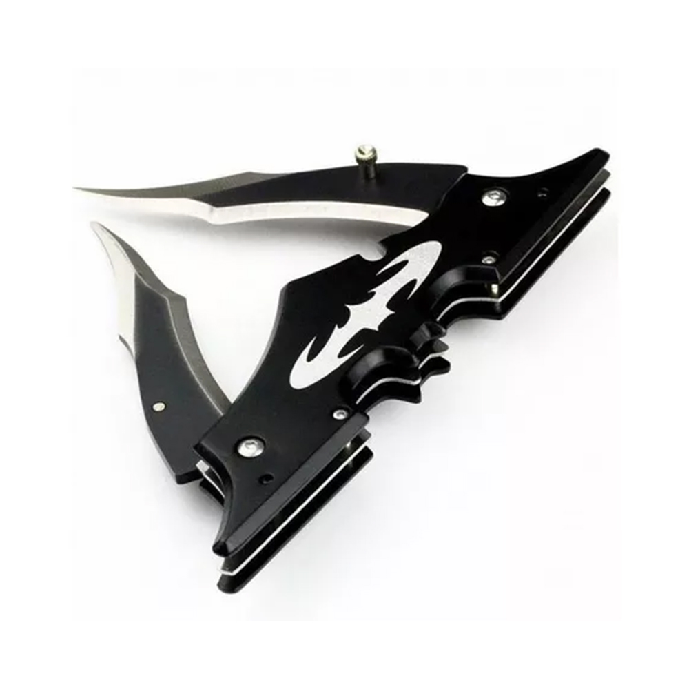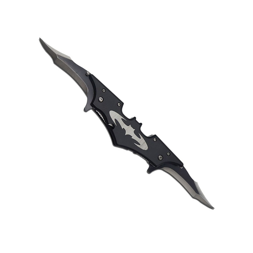 The Dual Blade Tactical Bat Knife features a unique bat-inspired design with dual assisted-opening blades for both functionality and style. Its durable aluminum handle provides a secure grip, making it an excellent addition to any collection.