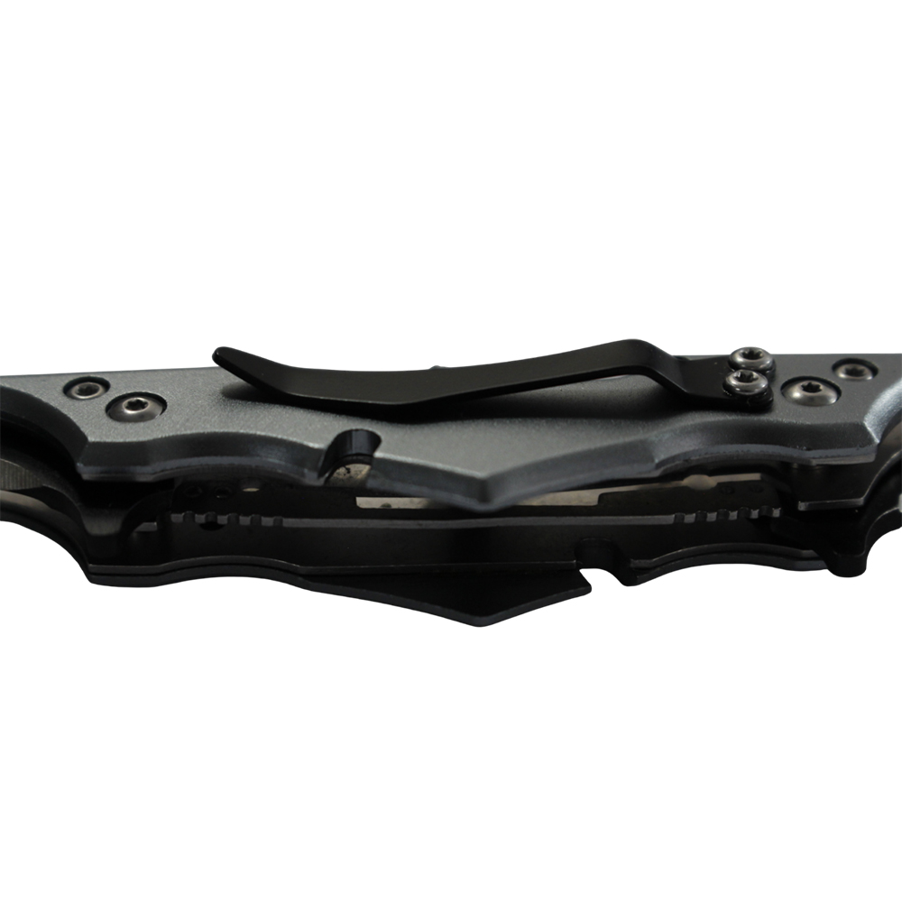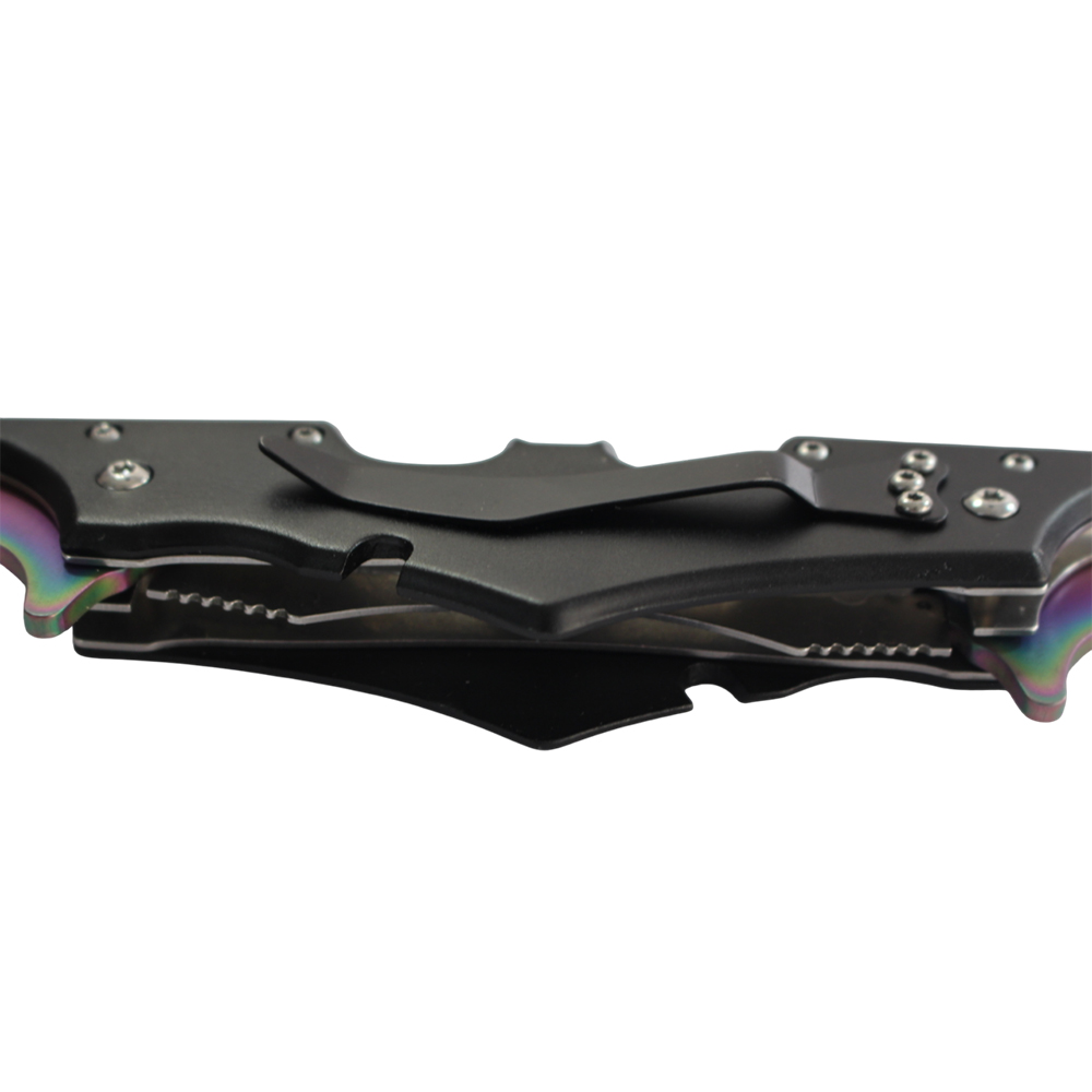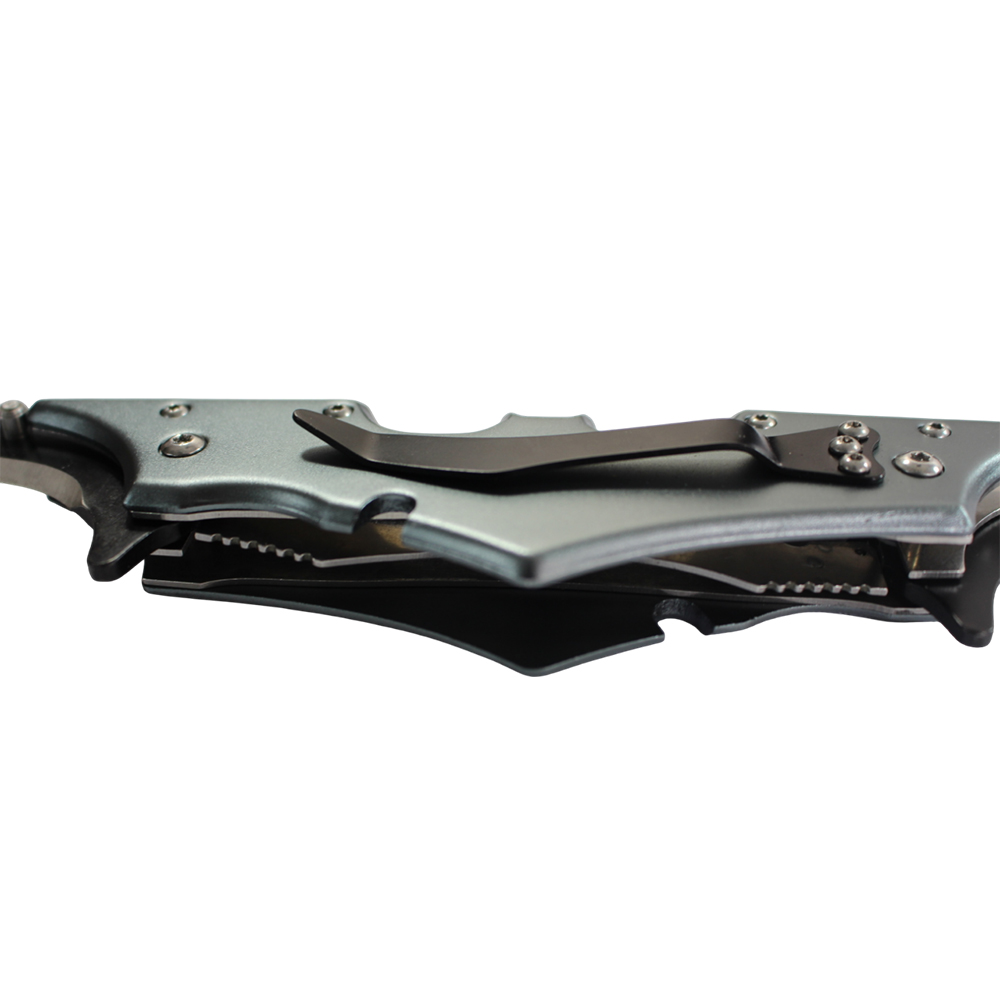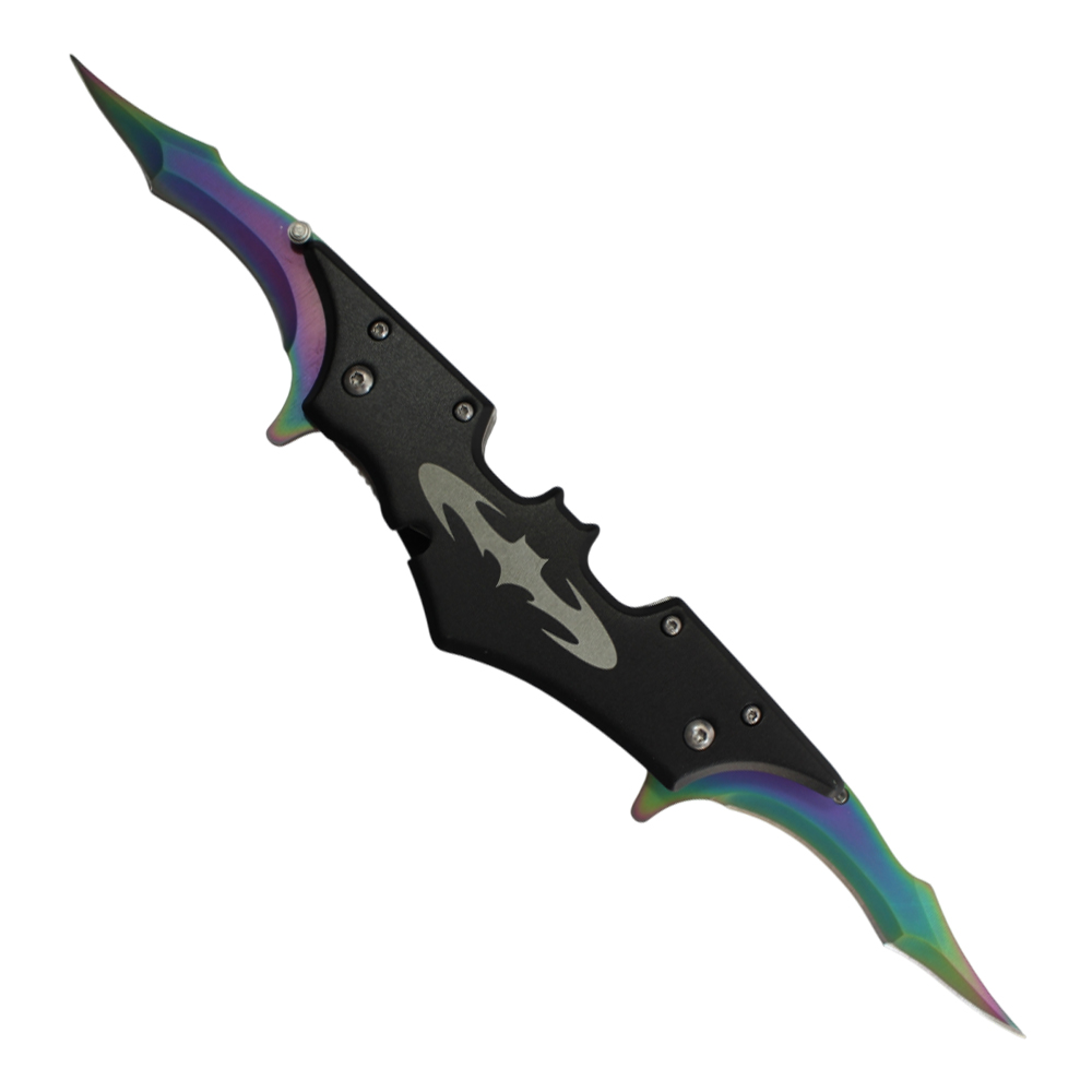The Dual Blade Tactical Bat Knife features a unique bat-inspired design with dual assisted-opening blades for both functionality and style. Its durable aluminum handle provides a secure grip, making it an excellent addition to any collection.