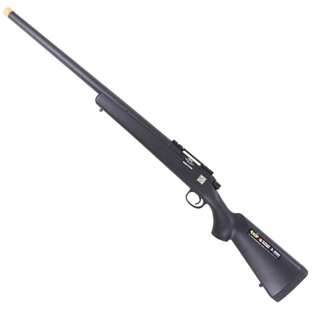 The PSR is a versatile spring powered bolt action sniper rifle that is affordable and highly upgradeable. It takes industry standard VSR parts.The safety is located at the rear of the action and is easy to reach. The hopup lever is located at the forend of the stock. It is a VSR type hopup unit with very responsive adjustment.The rail on top of the receiver is pre-installed to allow the operator to run magnification scopes for precision shots.