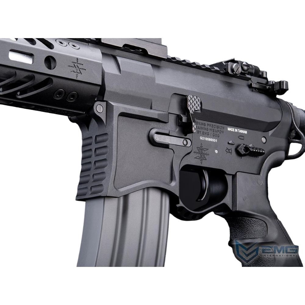 The Seekins Precision SP223 is a highly impressive rifle featuring a custom-tuned G&G G2 gearbox. The rifle boasts superior performance, including a snappy trigger response, excellent cyclic rate, and precision accuracy. The G2 gearbox has been designed with ultra-smooth 8mm bearings, full steel teeth piston, double O-ring aluminum nozzle and cylinder head, short stroked gear set, newly designed mosfet with precision-tuned ETU, and a quick change spring guide. The rifle also features a fire cutoff system that prevents dry-firing once the magazine is empty. The CNC machined receiver and handguard set are masterfully crafted and rival even the best aftermarket receivers in terms of quality and fit. Overall, the Seekins Precision SP223 is a high-end rifle that lives up to the standards set forth by EMG and Seekins Precision.
