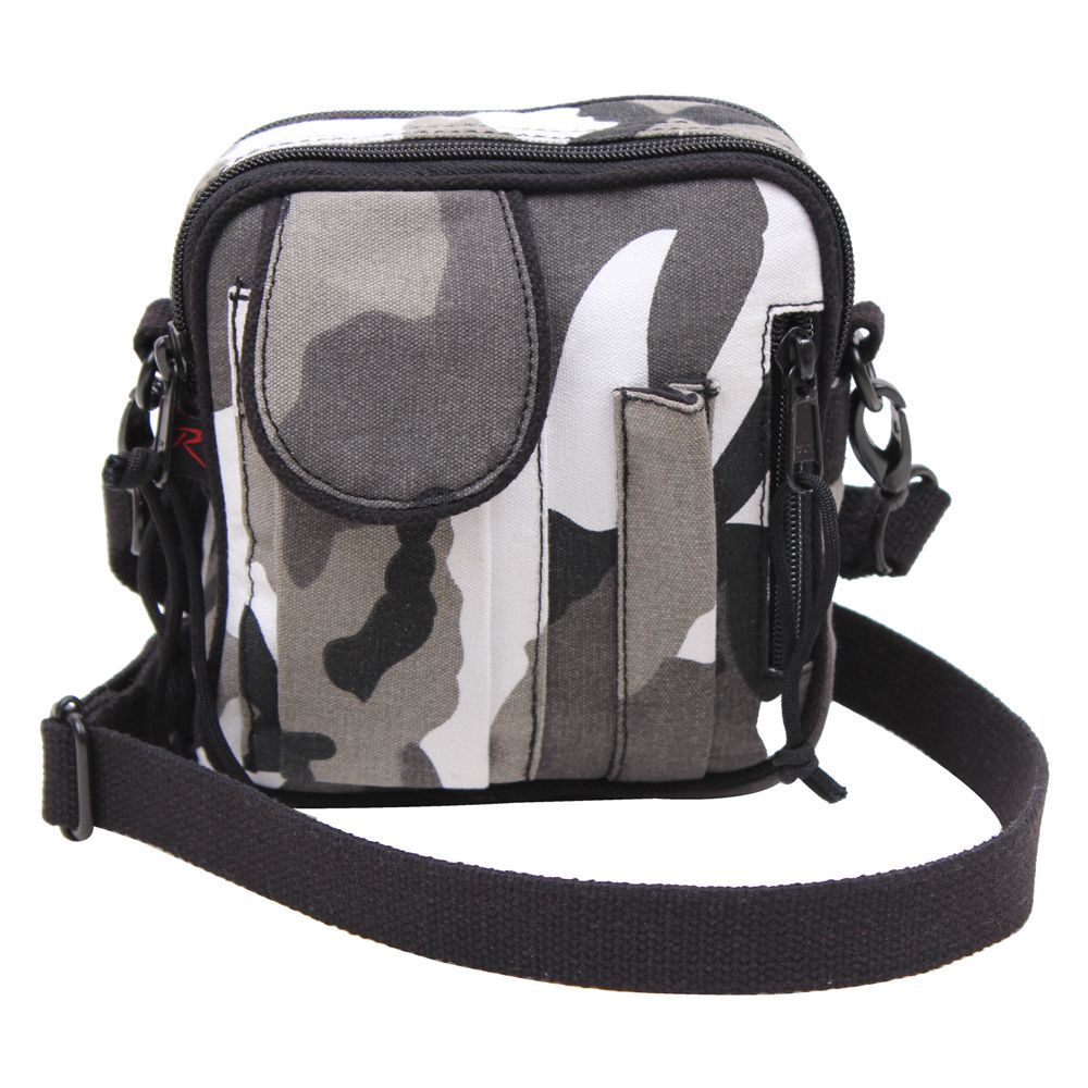 The Excursion Organizer Shoulder Bag is the perfect lightweight shoulder bag to bring while traveling to your next destination. Featuring a variety of pockets and pouches, including two main zippered compartments and a front hook and loop closure pouch, the travel bag has the ability to store and organize many essential items and gear. This camo shoulder bag is made of unwashed durable cotton canvas and includes black metal hardware. The excursion bag measures: 6 ½" X 6 ¼" X 2 ¾" and has a long shoulder strap.