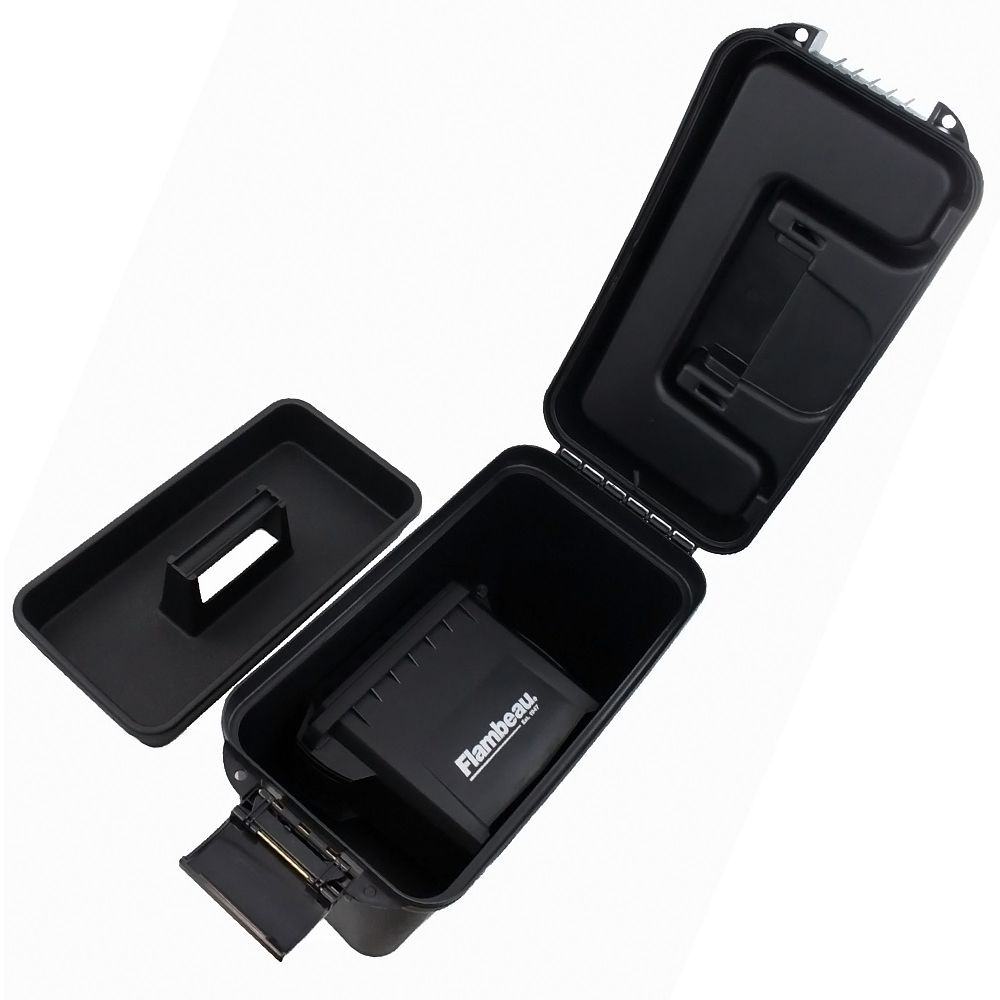 This Flambeau Tactical combo pack is a great way to keep your loose ammo, tools, and tactical gear safe from the elements. The 14" Dry Box comes with a removable tray as well as the Mini Ammo Can packed snuggly inside. Both containers have a durable polymer construction with OTC latch lids sealed by a water-resistant gasket. This dual storage kit is great for range bags, hunting, and camping trips.