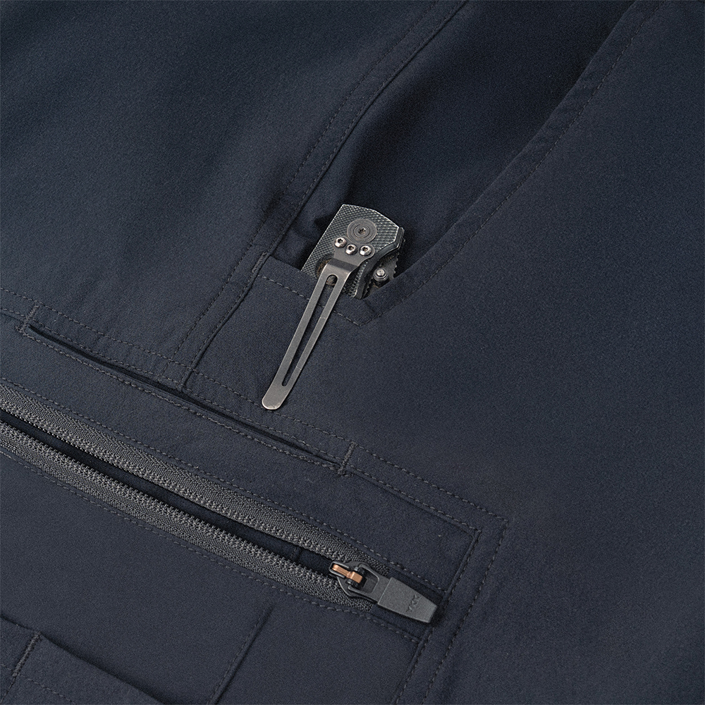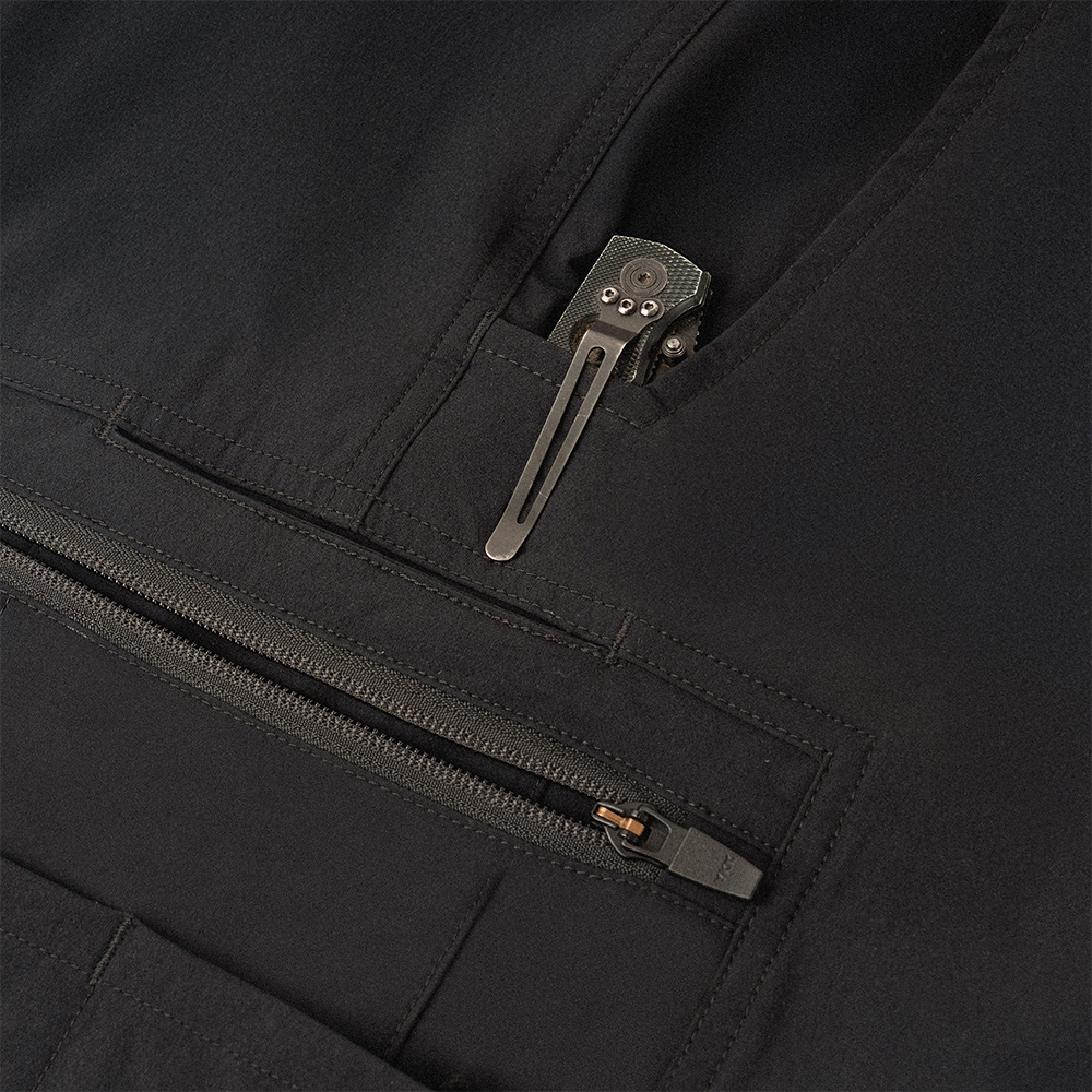 - Dual zippered low-profile cargo pockets with two internal mag pockets